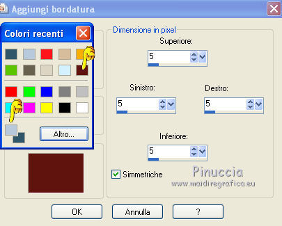 5. Immagine>Aggiungi bordatura, 5 pixels, simmetriche, con un colore diverso da quelli scelti.