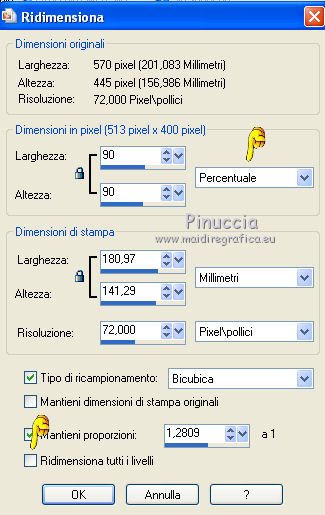 23. Immagine>Ridimensiona, al 90%, tutti i livelli non selezionato.