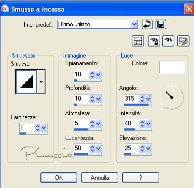 50. Effetti>Effetti 3D>Smusso a incasso, con i settaggi precedenti.