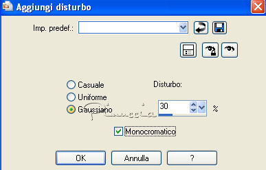 61. Regola>Aggiungi/Rimuovi disturbo>Aggiungi disturbo, con i settaggi precedenti.