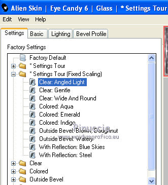 37. Effetti>Plugins>Alien Skin Eye Candy 6 Text_Selection - Glass, con i seguenti settaggi.