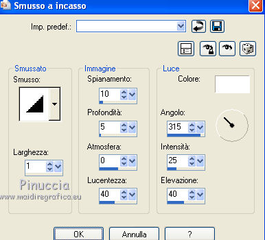 34. Effetti>Effetti 3D>Smusso a incasso, con i seguenti settaggi.