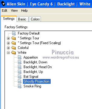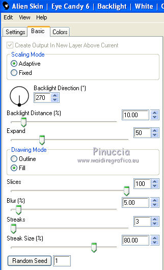 13. Effetti>Plugins>Alien Skin Eye Candy 6 Text Selection - Backlight, con i seguenti settaggi.