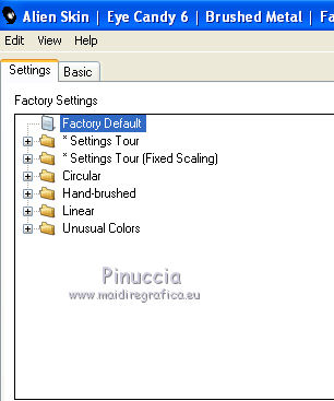 20. Effetti>Plugins>Alien Skin Eye Candy 6 Textures - Brushed Metal, con i seguenti settaggi.
