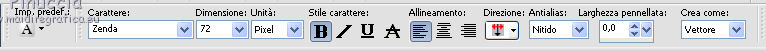 27. Attiva lo strumento Testo , seleziona il font Zenda, con i seguenti settaggi.