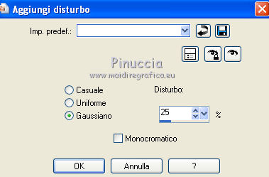 40. Regola>Aggiungi/Rimuovi disturbo>Aggiungi disturbo, con i settaggi precedenti.