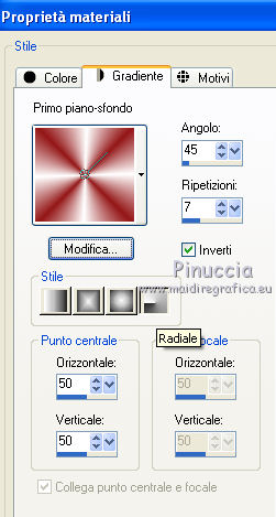 4. Passa il colore di primo piano a Gradiente Radiale, con i seguenti settaggi.