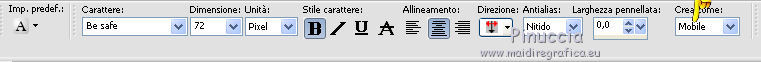 Per il mio esempio ho usato il font Be-safe con i seguenti settaggi.