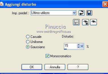 Regola>Aggiungi/Rimuovi disturbo>Aggiungi disturbo, con i settaggi precedenti.