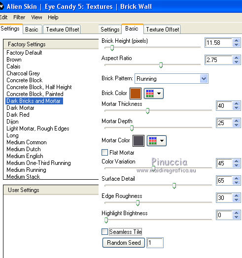 Effetti>Plugins>Alien Skin Eye candy 5 – Texture – Brick Wall: