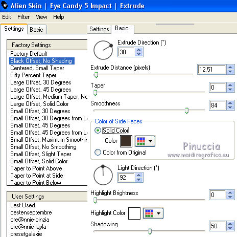 Effetti>Plugins>Alien Skin Eye candy 5 – Impact – Extrude.