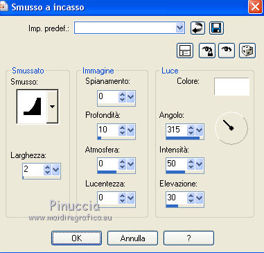 Effetti>Effetti 3D>Smusso a incasso, con i settaggi precedenti.