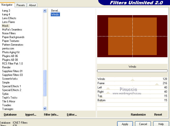 Effetti>Plugins>Filters Unlimited 2.0 – Mock – Windo.