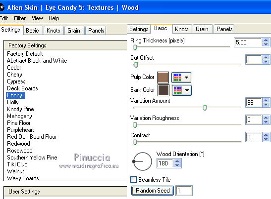 Effetti>Plugins>Alien Skin Eye candy 5 – Texture – Wood: