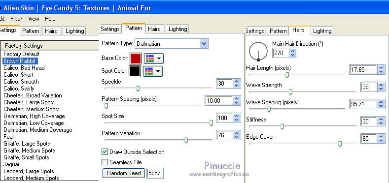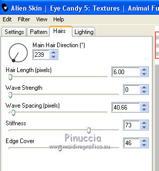 Effetti>Plugins>Alien Skin Eye Candy 5 Textures - Animal fur, con i seguenti settaggi.