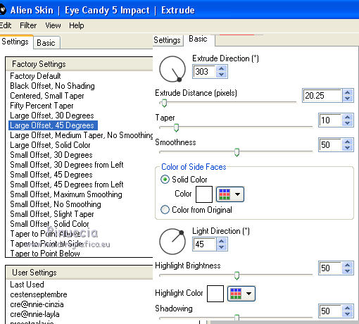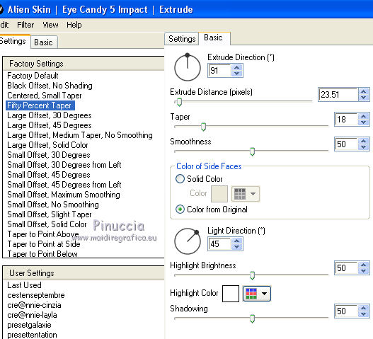 Effetti>Plugins>Alien Skin Eye Candy 5 Impact - Extrude: