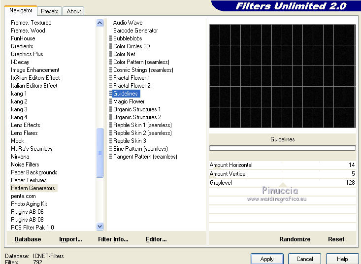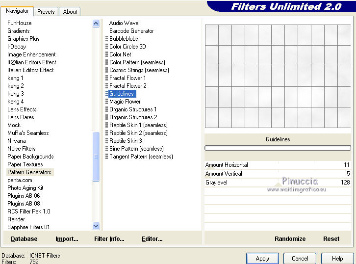 Effetti>Plugins>Filters Unlimited 2.0 - Pattern Generators - Guidelines.