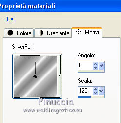 12. Passa il colore di sfondo a Motivi e seleziona uno dei tuoi motivi argento, con i seguenti settaggi.
