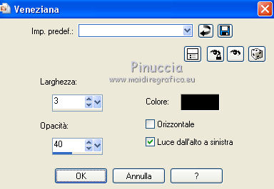 Effetti>Effetti di trama>Veneziana, con i seguenti settaggi.