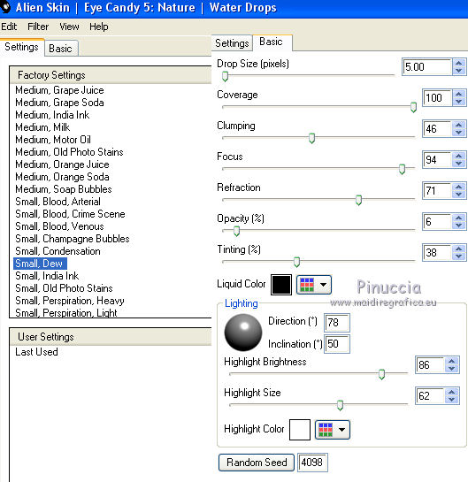 Effetti>Plugins>Alien Skin Eyecandy 5 Nature - Waterdrops: