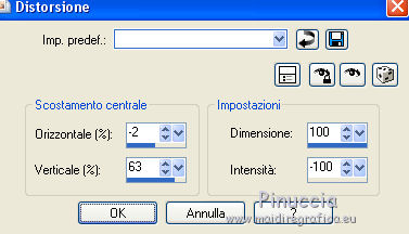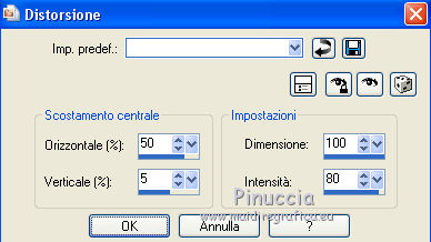 Effetti>Effetti di distorsione>Distorsione, con i seguenti settaggi.