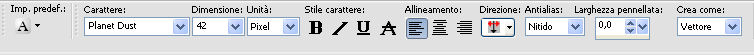 16. Attiva lo strumento Testo font Planet Dust