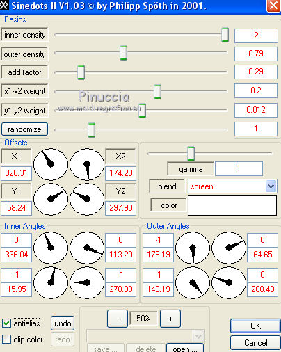 Effetti>Plugins>Dragon Fly – Sinedots II, con i seguenti settaggi.
