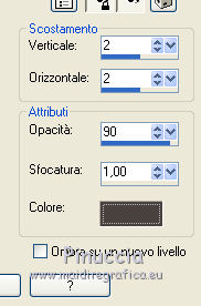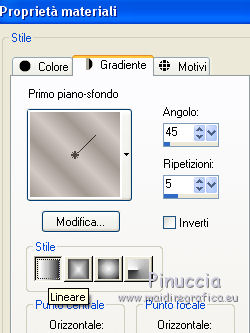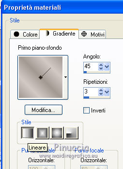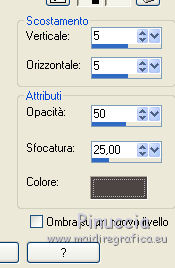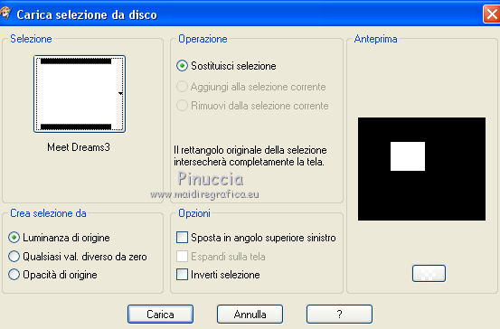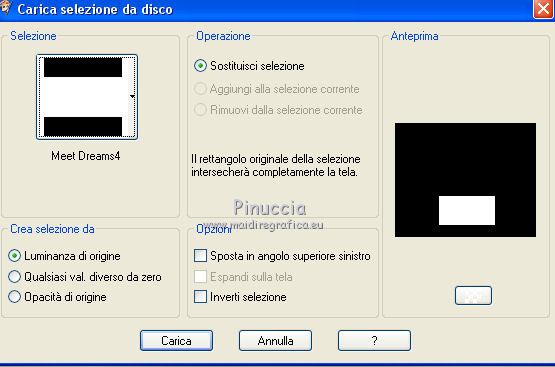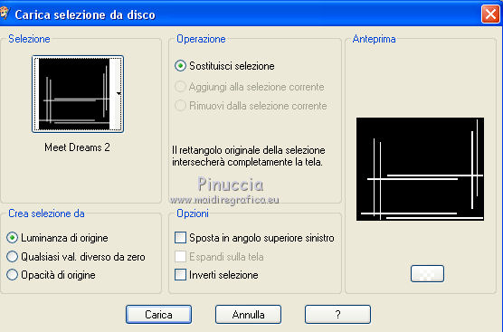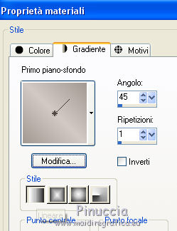 qui puoi trovare qualche risposta ai tuoi dubbi. Se l'argomento che ti interessa non è presente, ti prego di segnalarmelo. Questo tutorial è una creazione ©Meetjesplekje e non può essere copiato su altri siti nè essere offerto per il download. Lo stesso vale per la mia traduzione. Il materiale viene da vari gruppi di condivisione. Il copyright appartiene ai rispettivi autori. Grazie ai creatori dei tubes che mettono a disposizione il loro lavoro in vari gruppi di condivisione. Per tradurre questo tutorial ho usato CorelX, ma può essere realizzato anche con le altre versioni di PSP. Dalla versione X4, il comando Immagine>Rifletti è stato sostituito con Immagine>Capovolgi in orizzontale, e il comando Immagine>Capovolgi con Immagine>Capovolgi in verticale. Nelle versioni X5 e X6, le funzioni sono state migliorate rendendo disponibile il menu Oggetti. Vedi la scheda sull'argomento qui Traduzione francese qui Le vostre versioni quiOccorrente: Materiale qui Per i tubes grazie Mtm e Annie. (in questa pagina trovi i links ai siti dei creatori di tubes) Filtri: consulta, se necessario, la mia sezione filtri qui Filters Unlimited 2.0 qui Graphics Plus - Cross Shadow qui I filtri Graphics Plus si possono usare da soli o importati in Filters Unlimited (come fare vedi qui) Se un filtro fornito appare con questa icona ![]() Se stai usando altri colori puoi sperimentare le modalità di miscelatura e le opacità più adatte ai tuoi colori. Nelle ultime versioni di PSP non c'è il gradiente di primo piano/sfondo (Corel_06_029) Puoi usare i gradienti delle versioni precedenti. Trovi qui i gradienti Corel X. Apri i font e minimizzali. Li troverai nella lista dei font disponibili quando ti serviranno. Con i nuovi sistemi operativi questo non è più possibile. Per usare un font, occorre copiarlo nella cartella Font di Windows. Metti le selezioni nella cartella Selezioni. Metti le maschere nella cartella Maschere. 1. Apri una nuova immagine trasparente 800 x 650 pixels. 2. Imposta il colore di primo piano con a29992. e il colore di sfondo con #d2c9c5. ![]() Passa il colore di primo piano a Gradiente di primo piano/sfondo, stile Lineare. ![]() 3. Riempi l'immagine trasparente con il gradiente.Passa il colore di primo piano a Colore. 4 Livelli>Nuovo livello raster. Riempi il livello con il colore di primo piano.Livelli>Carica/Salva maschera>Carica maschera da disco. Cerca e carica la maschera 1 Way Mask 6. ![]() Livelli>Unisci>Unisci gruppo. 5. Livelli>Carica/Salva maschera>Carica maschera da disco. Cerca e carica la maschera 20-20 ![]() Livelli>Unisci>Unisci gruppo. 6. Livelli>Nuovo livello raster. Selezione>Seleziona tutto. 7. Apri il misted tube NS_157_0809 e vai a Modifica>Copia. Torna al tuo lavoro e vai a Modifica>Incolla nella selezione. Selezione>Deseleziona. Sposta il tube un po' più a sinistra.![]() Livelli>Duplica. Immagine>Ridimensiona, all'80%, tutti i livelli non selezionato. Immagine>Rifletti. Il tube è al suo posto ![]() 8. Livelli>Nuovo livello raster. Selezione>Carica/Salva selezione>Carica selezione da disco. Cerca e carica la selezione Meet Dreams 1. ![]() Riempi il livello con il colore di primo piano.Selezione>Modifica>Contrai - 2 pixels. 9. Passa il colore di primo piano a Gradiente, e porta le ripetizioni a 3. ![]() Riempi la selezione con il gradiente.Selezione>Deseleziona. Effetti>Effetti 3D>Sfalsa ombra, colore #4e4644. ![]() 10. Livelli>Nuovo livello raster. Selezione>Carica/Salva selezione>Carica selezione da disco. Cerca e carica la selezione Meet Dreams 2. ![]() Passa il colore di primo piano a Colore. Riempi la selezione con il colore di primo piano.Selezione>Modifica>Contrai - 2 pixels. 11.Livelli>Nuovo livello raster. Riporta il colore di primo piano a Gradiente. Riempi la selezione con il gradiente.Selezione>Deseleziona. Livelli>Unisci>Unisci giù. 12. Effetti>Effetti 3D>Sfalsa ombra, con i settaggi precedenti. 13. Livelli>Nuovo livello raster. Selezione>Carica/Salva selezione>Carica selezione da disco. Cerca e carica la selezione Meet Dreams 3. ![]() Passa il colore di primo piano a Colore. Riempi la selezione con il colore di primo piano.14. Selezione>Modifica>Contrai - 2 pixels. Livelli>Nuovo livello raster. Passa il colore di primo piano a Gradiente. Riempi la selezione con il gradiente.15. Apri il tube Mtm _30 bomen _small-30 april 2008, e vai a Modifica>Copia. Torna al tuo lavoro e vai a Modifica>Incolla come nuovo livello. Immagine>Ridimensiona, all'80%, tutti i livelli non selezionato. Posiziona correttamente il tube nella selezione.![]() 16. Selezione>Inverti. Premi sulla tastiera il tasto CANC ![]() Selezione>Deseleziona. Livelli>Unisci>Unisci giù - 2 volte. Effetti>Effetti 3D>Sfalsa ombra, con i settaggi precedenti. 17. Livelli>Duplica. Immagine>Rifletti. Sposta la cornice un po' più in alto e a destra.![]() 18. Livelli>Nuovo livello raster. Selezione>Carica/Salva selezione>Carica selezione da disco. Cerca e carica la selezione Meet Dreams 4. ![]() Passa il colore di primo piano a Colore. Riempi la selezione con il colore di primo piano.19. Effetti>Effetti 3D>Sfalsa ombra, con i settaggi precedenti. Selezione>Modifica>Contrai - 2 pixels. Passa il colore di primo piano a Gradiente. Riempi la selezione con il gradiente.20. Apri il tube Mtm _30 bomen _small klein e vai a Modifica>Copia. Torna al tuo lavoro e vai a Modifica>Incolla come nuovo livello. Immagine>Ridimensiona, 2 volte all'80%, tutti i livelli non selezionato. Posiziona il tube nella selezione.Selezione>Inverti. Premi sulla tastiera il tasto CANC ![]() Selezione>Deseleziona. 21. Effetti>Effetti 3D>Sfalsa ombra, con i settaggi precedenti. 22.Livelli>Duplica. Immagine>Rifletti Se necessario, posiziona correttamente nel rettangolo.![]() 23.Livelli>Unisci>Unisci giù. 24. Apri il tube AM-Blondy e vai a Modifica>Copia. Torna al tuo lavoro e vai a Modifica>Incolla come nuovo livello. Immagine>Rifletti. Sposta il tube a destra.25. Effetti>Effetti 3D>Sfalsa ombra, colore #49423f. ![]() Ripeti l'Effetto 