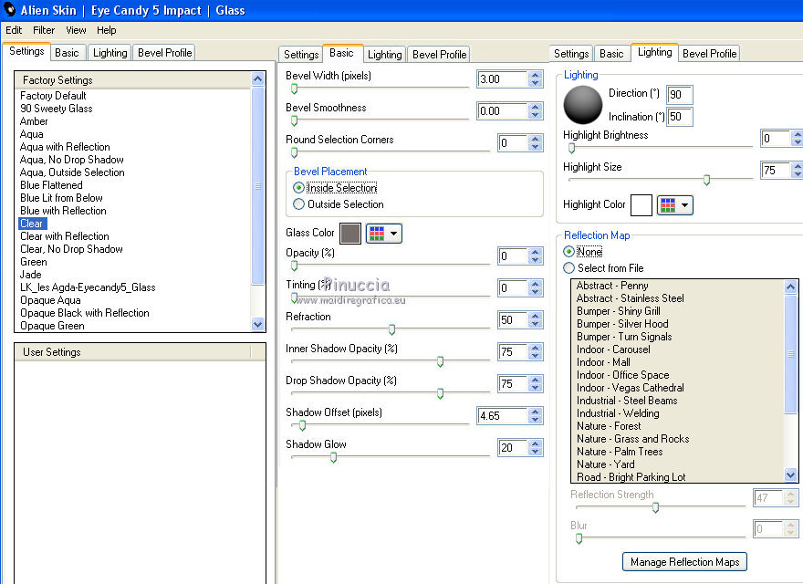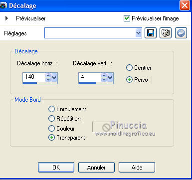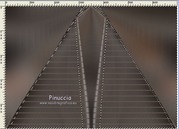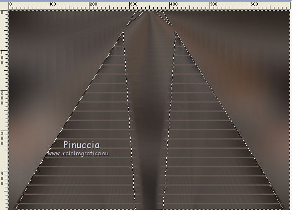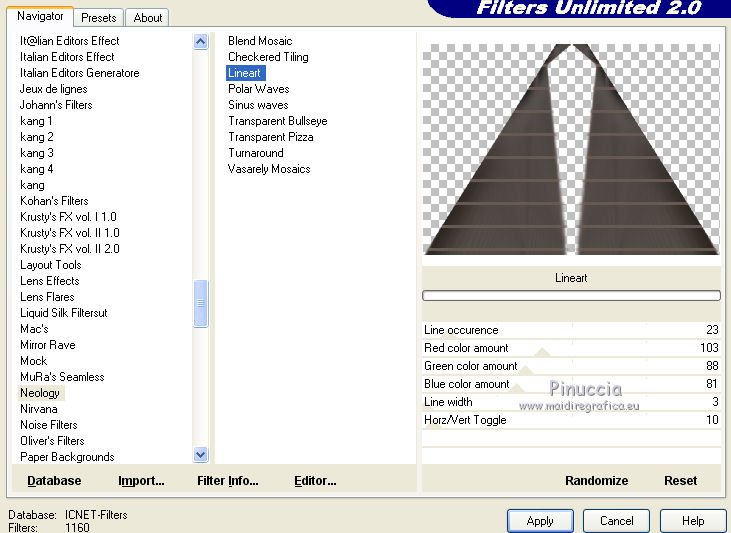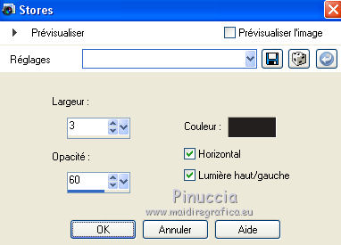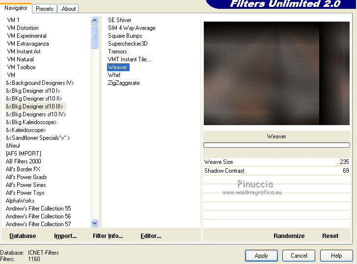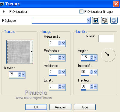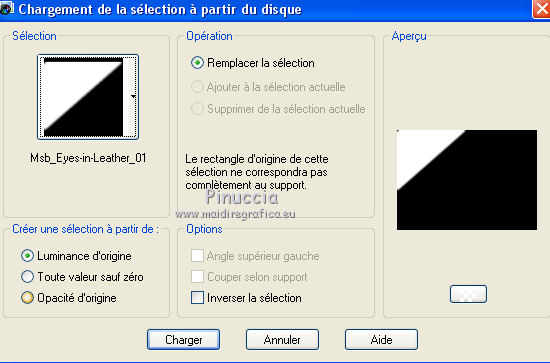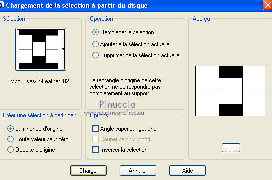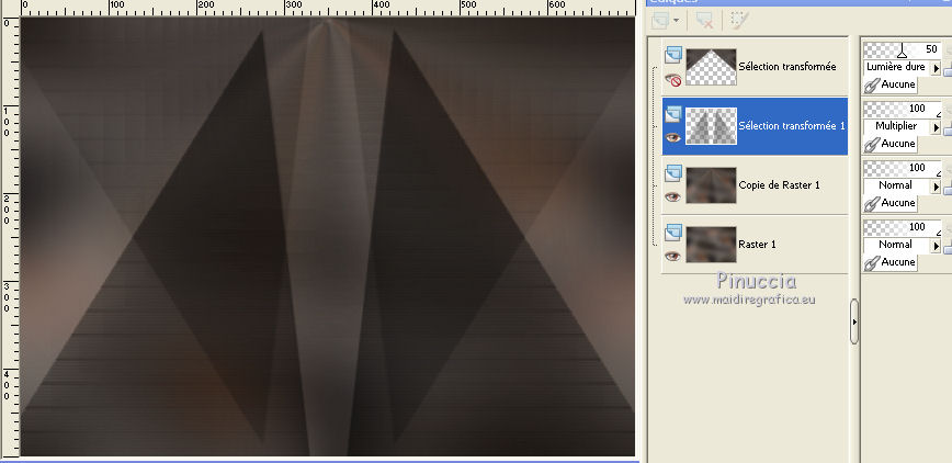 qui puoi trovare qualche risposta ai tuoi dubbi. Se l'argomento che ti interessa non è presente, ti prego di segnalarmelo. Pour traduire ce tutoriel j'ai utilisé Corel X2, mais il peut également être exécuté avec les autres versions. Suivant la version utilisée, vous pouvez obtenir des résultats différents. Depuis la version X4, la fonction Image>Miroir a été remplacée par Image>Renverser horizontalement, et Image>Renverser avec Image>Renverser verticalement. Dans les versions X5 et X6, les fonctions ont été améliorées par la mise à disposition du menu Objets. Avec la nouvelle version X7, nous avons à nouveau Miroir/Retourner, mais avec nouvelles différences. Consulter, si vouz voulez, mes notes ici Certaines dénominations ont changées entre les versions de PSP. Les plus frequentes dénominations utilisées: ![]() traduction italienne ici vos versions iciNécessaire pour réalise le tutoriel: Matériel ici Pour le tube merci Maxyran. (les liens des sites des tubeuses ici) Modules Externes. consulter, si nécessaire, ma section de filtre ici Filters Unlimited 2.0 ici certains filtres donnent des résultats différents selon la version d'Unlimited utilisée. Meta a utilisé la version d'Unlimited qui n'est pas installée car elle est composée de fichiers au format 8bf. Retrouvez cette version ici Si vous devez remplacer la version d'Unlimited dans les Emplacements des fichiers, rappelez-vous qu'il ne s'agit pas d'une désinstallation du filtre ; quand il est nécessaire, vous pouvez toujours faire l'opération inverse Simple - top Left Mirror, 4Way Average ici &<Bkg Designer sf10III> - Weaver (da importare in Unlimited) ici Toadies - What are you ici Alien Skin Eye Candy 5 Impact - Glass ici Neology - Lineart ici Filtres Simple, Toadies et Neology peuvent être utilisés seuls ou importés dans Filters Unlimited. voir comment le faire ici). Si un filtre est fourni avec cette icône, ![]() N'hésitez pas à changer le mode mélange des calques et leur opacité selon les couleurs que vous utiliserez Dans les plus récentes versions de PSP, vous ne trouvez pas le dégradé d'avant plan/arrière plan ou Corel_06_029. Vous pouvez utiliser le dégradé des versions antérieures. Ici le dossier Dégradés de CorelX. Ouvrez les polices et les minimiser. Vous les trouverez dans la liste des polices disponibles lorsque vous en avez besoin. Avec les nouveaux s.o. ce n'est plus possible. Pour utiliser une police, vous devez la copier dans le dossier Fonts de Windows. Placer les sélections dans le dossier Sélections. Placer en avant plan la couleur #24201f, et en arrière plan la couleur #b2a9a4. ![]() Préparer en avant plan un dégradé de premier plan/arrière plan, style Halo. ![]() 1. Ouvrir une nouvelle image transparente 700 x 500 pixels. Remplir du dégradé.Calques>Nouveau calque raster. Sélections>Sélectionner tout. Ouvrir le tube Maxyran_01_06_10 Woman248 - Édition>Copier. Revenir sur votre travail et Édition>Coller dans la sélection. Sélections>Désélectionner tout. Effets>Effets d'image>Mosaïque sans jointures, par défaut. ![]() Réglage>Flou>Flou gaussien - rayon 40 ![]() Calques>Fusionner>Fusionner le calque de dessous. 2. Calques>Dupliquer. Effets>Effets de réflexion>Résonance. ![]() Réglage>Netteté>Netteté. Sélections>Charger/Enregistrer une sélection>Charger à partir du disque. Chercher et charger la sélection Msb_Eyes-in_Leather_01. ![]() Sélections>Transformer la sélection en calque. Effets>Effets 3D>Ombre portée, couleur d'avant plan #24201f. ![]() Sélections>Désélectionner tout. Calques>Dupliquer. Image>Redimensionner, à 70%, redimensionner tous les calques décoché. Déplacer l'image dans le coin en haut à gauche.![]() Calques>Fusionner>Fusionner le calque de dessous. Calques>Dupliquer. Image>Miroir. Calques>Fusionner>Fusionner le calque de dessous. Placer le calque en mode Lumière dure et réduire l'opacité à 50%. Fermer ce calque pour le moment. 3. Vous positionner sur le calque de dessous. Sélections>Charger/Enregistrer une sélection>Charger à partir du disque. Charger à nouveau la sélection Msb_Eyes-in_Leather_01. ![]() Sélections>Transformer la sélection en calque. Sélections>Désélectionner tout. Calques>Dupliquer. Image>Redimensionner, à 70%, redimensionner tous les calques décoché. Déplacer l'image dans le coin en haut à gauche.Calques>Fusionner>Fusionner le calque de dessous. Effets>Modules Externes>Simple – Top Left Mirror. ![]() Effets>Effets géométriques>Perspective verticale. ![]() 4. Effets>Modules Externes>Filters Unlimited 2.0 - Neology - Line art ![]() Sélections>Sélectionner tout. Sélections>Flottante. Sélections>Statique. Sélections>Modifier>Contracter - 5 pixels. Sélections>Inverser. Presser CANC sur le clavier ![]() J'ai cliqué deux fois pour faire disparaître au maximum les bords blancs. ![]() ![]() Sélections>Désélectionner tout. Effets>Modules Externes>Simple – Horizontal Grain. Activer l'outil Sélection au lasso , point à point,et tracer une sélection de la partie grise au centre ![]() Activer l'outil Baguette magique , tolérance 15-20 pixels,et cliquer dans les parties grises à droite et à gauche, afin que toutes les parties grises soient sélectionnées. ![]() Sélections>Modifier>Agrandir - 2 pixels. Presser CANC sur le clavier ![]() Sélections>Désélectionner tout. Image>Redimensionner, à 120%, redimensionner tous les calques décoché. Calques>Dupliquer. Vous positionner sur le calque de dessous de l'original. Effets>Modules Externes>Simple – 4 Way Average. Vous positionner sur le calque de dessus de la copie. Calques>Fusionner>Fusionner le calque de dessous. Placer le calque en mode Multiplier. ![]() 4. Vous positionner sur le calque de dessous. Calques>Agencer>Placer en haut de la pile. Effets>Modules Externes>Filters Unlimited 2.0 - &<Bkg Designer sf10III> - Weaver. ![]() Activer l'outil Sélecteur ![]() en mode Échelle ![]() abaisser le bloc central e