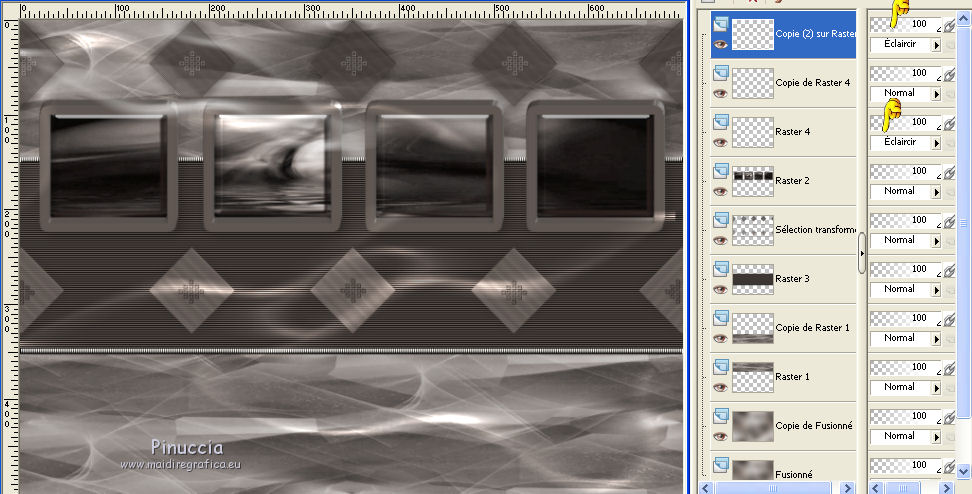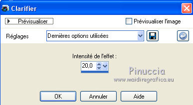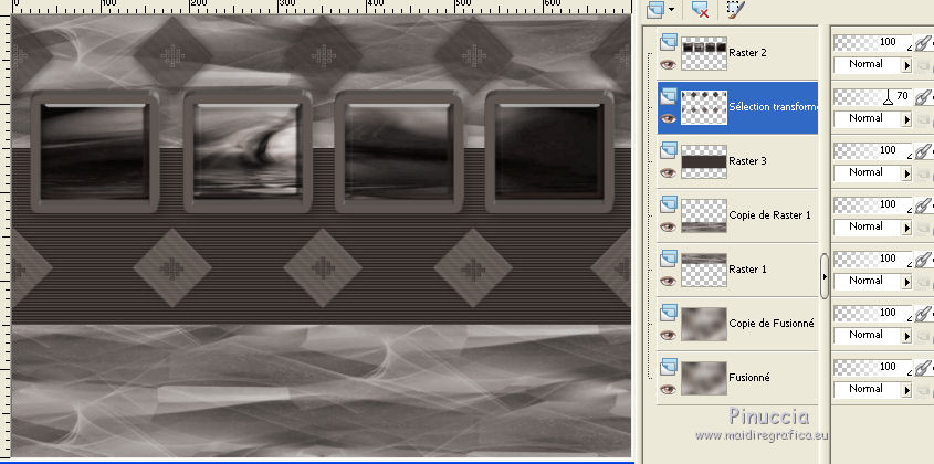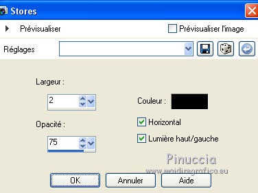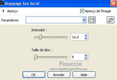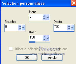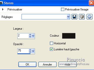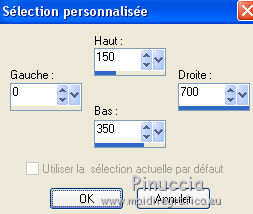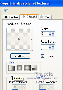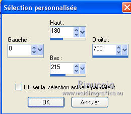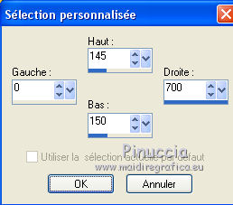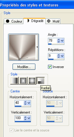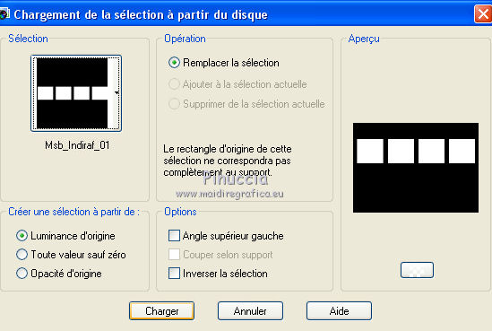 qui puoi trovare qualche risposta ai tuoi dubbi. Se l'argomento che ti interessa non è presente, ti prego di segnalarmelo. Pour traduire ce tutoriel j'ai utilisé Corel X2, mais il peut également être exécuté avec les autres versions. Suivant la version utilisée, vous pouvez obtenir des résultats différents. Depuis la version X4, la fonction Image>Miroir a été remplacée par Image>Renverser horizontalement, et Image>Renverser avec Image>Renverser verticalement. Dans les versions X5 et X6, les fonctions ont été améliorées par la mise à disposition du menu Objets. Avec la nouvelle version X7, nous avons à nouveau Miroir/Retourner, mais avec nouvelles différences. Consulter, si vouz voulez, mes notes ici Certaines dénominations ont changées entre les versions de PSP. Les plus frequentes dénominations utilisées: ![]() traduction italienne ici vos versions ici Nécessaire pour réalise le tutoriel: Matériel ici Pour le tube de la femme merci Yoka Modules Externes. consulter, si nécessaire, ma section de filtre ici AAA Multifilter qui Alien Skin Eye Candy 5 Impact - Glass, Bevel, Extrude qui ![]() N'hésitez pas à changer le mode mélange des calques et leur opacité selon les couleurs que vous utiliserez. Dans les plus récentes versions de PSP, vous ne trouvez pas le dégradé d'avant plan/arrière plan ou Corel_06_029. Vous pouvez utiliser le dégradé des versions antérieures. Ici le dossier Dégradés de CorelX. Ouvrez la police et la minimiser. Vous la trouverez dans la liste des polices disponibles lorsque vous en avez besoin. Avec les nouveaux s.o. ce n'est plus possible. Pour utiliser une police, vous devez le copier dans le dossier Fonts de Windows. Placer le pinceau dans le dossier Pinceaux. Attention, le pinceau se compose de deux files qui on ne doit séparer. Consulter, si vous voulez, les notes sur les pinceaux ici Placer en avant plan la couleur #7d6c62, et en arrière plan la couleur #f3f0ea. ![]() Préparer en avant plan un dégradé de premier plan/arrière plan, style Radial. ![]() 1. Ouvrir une nouvelle image transparente 700 x 500 pixels, Remplir l'image du dégradé.Réglage>Flou>Flou gaussien - rayon 40. ![]() Calques>Nouveau calque raster. Sélections>Sélectionner tout. Ouvrir le tube Alies 379-vrouwen-28122010 - Édition>Copier. ne pas fermer le tube; on va s'en servir plus tard Revenir sur votre travail et Édition>Coller dans la sélection. Sélections>Désélectionner tout. Effets>Effets d'image>Mosaïque sans jointures, par défaut. ![]() Réglage>Flou>Flou gaussien - rayon 55. ![]() Réglage>Teinte et Saturation>Coloriser. ![]() Calques>Fusionner>Calques visibles. Calques>Dupliquer. 2. Placer en avant plan la couleur #605752. ![]() Sélections>Charger/Enregistrer une sélection. Chercher et charger la sélection Msb_Indira_01. ![]() Calques>Nouveau calque raster. Remplir le calque avec la couleur d'avant plan.Sélections>Modifier>Contracter - 10 pixels. Sélections>Modifier>Sélectionner les bordures de la sélection. ![]() Sélections>Inverser. Presser CANC sur le clavier ![]() Sélections>Inverser. Effets>Modules Externes>Alien Skin Eye Candy 5 Impact - Extrude. Sélectionner le preset Small Offset,30 Degrees et sous Basic placer ces réglages. ![]() Sélections>Désélectionner tout. Activer l'outil Baguette magique ![]() et cliquer sur le 4 blocs pour les sélectionner. ![]() Sélections>Modifier>Agrandir - 4 pixels. 3. Calques>Nouveau calque raster. Ouvrir l'image "2" - Édition>Copier. Revenir sur votre travail et Édition>Coller dans la sélection. Sélections>Désélectionner tout. Réglage>Teinte et Saturation>Coloriser, comme précédemment. ![]() Calques>Agencer>Déplacer vers le bas. Effets>Modules Externes>Alien Skin Eye Candy 5 Impact - Bevel. Settings: Concave Edge Basic: changer Bevel width avec 9.58 Lighting: Highlight color: #f3f0ea - shadow Color: #1a1614. ![]() Effets>Modules Externes>Alien Skin Eye Candy 5 Impact - Glass. Settings: Clear. Basic, changer Bevel width avec 11.57. ![]() Réglage>Luminosité et contraste>Mappage ton local ![]() Cet effet se trouve seulement à partir de la version CorelX14. Ci-dessous la différence avant et après l'application. ![]() Si vous utilisez une version précédente, vous pouvez jouer avec d'autres effets, par exemple Réglage>Luminosité et contraste>Clarifier ![]() Vous positionner sur le calque du haut de la pile. Effets>Effets 3D>Ombre portée, couleur #1a1614. ![]() Calques>Fusionner>Fusionner le calque de dessous. 4. Calques>Nouveau calque raster. Activer l'outil Sélection ![]() (peu importe le type de sélection, parce que avec la sélection personnalisée vous obtenez toujours un rectangle), cliquer sur Sélection personnalisée ![]() et setter ces paramètres. ![]() Ouvrir l'image d'arrière plan Msb_Pattern10710 - Édition>Copier. Revenir sur votre travail et Édition>Coller dans la sélection. Sélections>Désélectionner tout. Réglage>Teinte et Saturation>Coloriser, comme précédemment. ![]() Calques>Agencer>Déplacer vers le bas. Calques>Dupliquer. Image>Renverser. 5. Calques>Nouveau calque raster. Sélection personnalisée ![]() ![]() Remplir la sélection avec la couleur d'avant plan.Sélections>Désélectionner tout. Effets>Effets de textures>Stores - couleur noire. ![]() 6. Sélection personnalisée ![]() ![]() Sélections>Transformer la sélection en calque. Sélections>Désélectionner tout. Effets>Effets 3D>Ombre portée, couleur #1a1614. ![]() Répéter Ombre portée, mais vertical et horizontal -5. Image>Rotation libre - 45 degrés à droite. ![]() Image>Redimensionner, à 80%, redimensionner tous les calques décoché. Déplacer la forme en haut au centre.Calques>Dupliquer et répéter 3 fois. Positionner bien les formes.Lorsque tout est est à sa place, vous positionner sur le calque du haut des formes. Calques>Fusionner>Fusionner le calque de dessous et répéter 3 fois. ![]() Calques>Nouveau calque raster. Activer l'outil Pinceau ![]() chercher et s