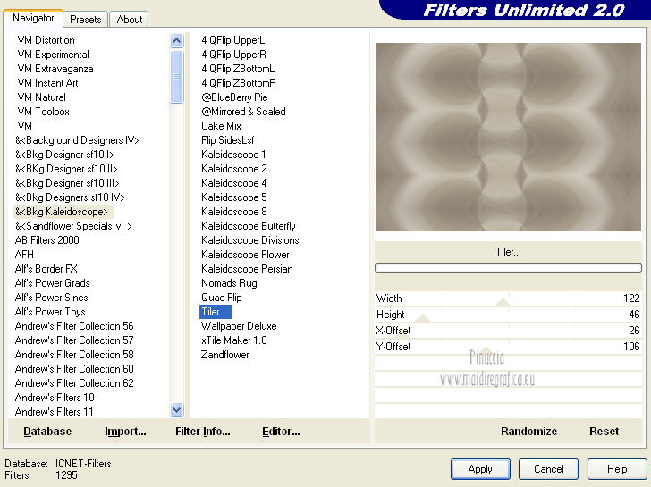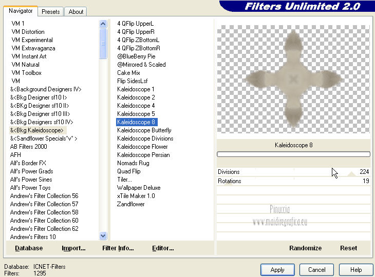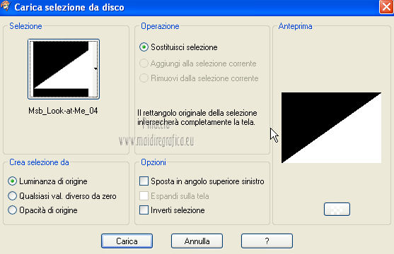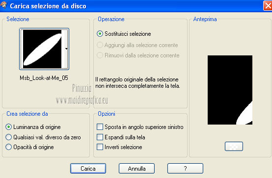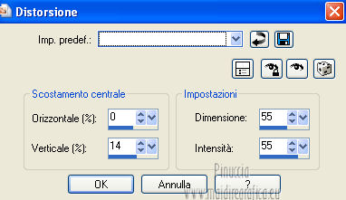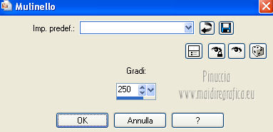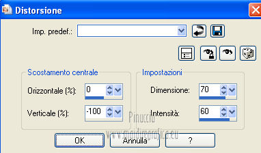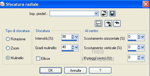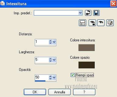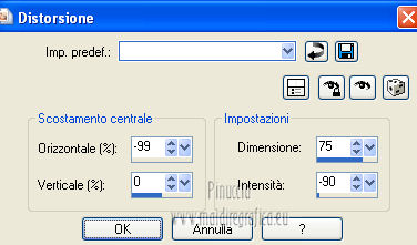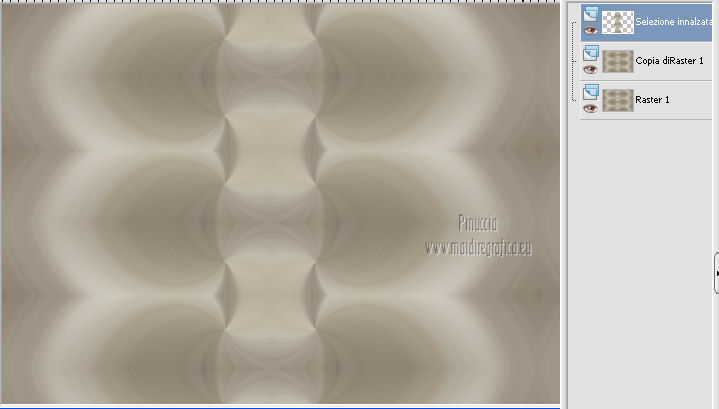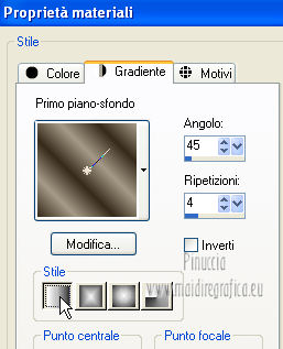 qui puoi trovare qualche risposta ai tuoi dubbi. Se l'argomento che ti interessa non è presente, ti prego di segnalarmelo. Questo tutorial è una creazione ©Meetjesplekje e non può essere copiato su altri siti nè essere offerto per il download. Lo stesso vale per la mia traduzione. Il materiale viene da vari gruppi di condivisione. Il copyright appartiene ai rispettivi autori. Grazie ai creatori dei tubes che mettono a disposizione il loro lavoro in vari gruppi di condivisione. Per tradurre questo tutorial ho usato PSP X. Occorrente: Materiale qui Per i tubes della donna grazie Syl Filtri: consulta, se necessario, la mia sezione filtri qui Filters Unlimited 2.0 qui &<Bkg Kaleidoscope> - Tiler, Kaleidoscope 8 (da importare in Unlimited) qui Graphics Plus - Cross Shadow qui ![]() Se stai usando altri colori puoi sperimentare le modalità di miscelatura e le opacità più adatte ai tuoi colori. Metti il pennello nella cartella Pennelli. Attenzione, il pennello è composto da due files che non devono essere separati. Vedi gli appunti sui pennelli qui Metti le selezioni nella cartella Selezioni. Imposta il colore di primo piano con #362a1a, e il colore di sfondo con #a59987. ![]() Passa il colore di primo piano a Gradiente, stile Lineare, con i seguenti settaggi. ![]() 1. Apri una nuova immagine trasparente 700 x 500 pixels, e riempila con il gradiente.Apri il tube SvB(420)Beauty e vai a Modifica>Copia. Torna al tuo lavoro e vai a Modifica>Incolla nella selezione. Selezione>Deseleziona. Effetti>Effetti di immagine>Motivo unico, con i settaggi standard. ![]() Regola>Sfocatura>Sfocatura radiale, con i seguenti settaggi. ![]() Effetti>Plugins>Unlimited 2.0 – &<Bkg Kaleidoscope> – Tiler, con i settaggi standard. ![]() Livelli>Duplica. 2. Selezione>Carica/Salva selezione>Carica selezione da disco. Cerca e carica la selezione Msb_Look-at-Me_01. ![]() Selezione>Innalza selezione a livello. Selezione>Deseleziona. Effetti>Effetti di distorsione>Distorsione. ![]() Effetti>Effetti di bordo>Aumenta. Modifica>Copia. Modifica>Incolla come nuova IMMAGINE. Salva l'immagine per precauzione e minimizzala (la userai più tardi). Secondo la versione di PSP che stai usando, potresti avere un risultato differente. Sotto a sinistra, l'immagine con CorelX3, a destra con CorelX. ![]() 3. Torna al tuo lavoro. Ripeti Effetti>Effetti di distorsione>Distorsione, con i settaggi precedenti. Modifica>Copia. Modifica>Incolla come nuova immagine. Salva l'immagine e minimizzala. anche qui potrai avere un risultato differente a seconda della versione di PSP che stai usando. A sinistra l'immagine realizzata con CorelX3, a destra con CorelX. ![]() Torna al tuo lavoro e annulla le ultime tre azioni: Modifica>Annulla azione Distorsione. Modifica>Annulla azione Accentua i bordi. Modifica>Annulla azione Distorsione. E avrai questo. ![]() 4.Effetti>Plugins>Unlimited 2.0 – &<Bkg Designer sf10 II> – Kaleidoscope 8, con i settaggi standard. ![]() Effetti>Effetti 3D>Sfalsa ombra, con il colore #2c2722. ![]() Livelli>Duplica. Immagine>Ridimensiona, all'80%, tutti i livelli non selezionato. Livelli>Unisci>Unisci giù. Cambia la modalità di miscelatura di questo livello in Luce diffusa. 5. Attiva il livello centrale. Selezione>Carica/Salva selezione>Carica selezione da disco. Carica nuovamente la selezione Msb_Look-at-Me_01. ![]() Selezione>Innalza selezione a livello. Selezione>Deseleziona. Livelli>Disponi>Porta in alto. 6. Attiva il secondo livello dal basso. Selezione>Carica/Salva selezione>Carica selezione da disco. Cerca e carica la selezione Msb_Look-at-Me_02. ![]() Selezione>Innalza selezione a livello. Selezione>Deseleziona. Livelli>Disponi>Porta in alto. Effetti>Effetti di immagine>Scostamento. ![]() Effetti>Effetti di distorsione>Distorsione. ![]() 7. Livelli>Duplica. Effetti>Effetti di distorsione>Coordinate polari. ![]() Effetti>Effetti di distorsione>Mulinello. ![]() Effetti>Effetti di immagine>Scostamento. ![]() Selezione>Carica/Salva selezione>Carica selezione da disco. Cerca e carica la selezione Msb_Look-at-Me_03. ![]() Premi tre volte sulla tastiera il tasto CANC ![]() Selezione>Deseleziona. Effetti>Effetti di distorsione>Stringi nelle versioni più recenti di PSP ha assunto la denominazione Compressione ![]() Effetti>Effetti di immagine>Scostamento. ![]() Livelli>Unisci>Unisci giù. Livelli>Duplica. Immagine>Rifletti. Livelli>Unisci>Unisci giù. Livelli>Disponi>Sposta giù - 2 volte (sotto il livello del "fiore"). Abbassa l'opacità di questo livello al 50%. Effetti>Effetti 3D>Sfalsa ombra, con il colore #2c2722. ![]() 8. Attiva il livello superiore. Livelli>Nuovo livello raster. Selezione>Carica/Salva selezione>Carica selezione da disco. Cerca e carica la selezione Msb_Look-at-Me_04. ![]() Imposta il colore di primo piano con #6f6150, e riempi la selezione con questo colore.Selezione>Deseleziona. Effetti>Effetti di distorsione>Distorsione. ![]() Livelli>Duplica. Immagine>Rifletti. Immagine>Capovolgi. Livelli>Unisci>Unisci giù. Cambia la modalità di miscelatura di questo livello in Moltiplica, e abbassa l'opacità al 43%. Effetti>Effetti di trama>Intessitura colore intessitura #6f6150, riempi spazi #362a1a. ![]() 9. Livelli>Nuovo livello raster. Selezione>Carica/Salva selezione>Carica selezione da disco. Cerca e carica la selezione Msb_Look-at-Me_05. ![]() Imposta il colore di primo piano con #e5e6e1, e riempi la selezione con questo colore.Selezione>Deseleziona. Cambia la modalità di miscelatura di questo livello in Luce diffusa, e abbassa l'opacità al 63%. Livelli>Duplica. Attiva il livello sottostante dell'originale. Effetti>Effetti di distorsione>Distorsione. ![]() Cambia la modalità di miscelatura di questo livello in Moltiplica, e lascia l'opacità al 63%. Dovresti avere questo. ![]() Attiva nuovamente il livello superiore. 10. Riporta il colore di primo piano al colore iniziale #362a1a. Livelli>Nuovo livello raster. Attiva lo strumento Pennello ![]() cerca e seleziona il pennello Msb_Brush_24-9-11 
