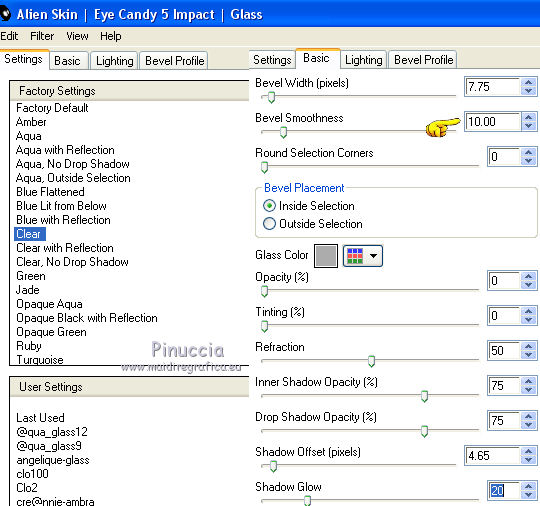 Effetti>Plugins>Alien Skin Eye Candy 5 Impact - Glass.
