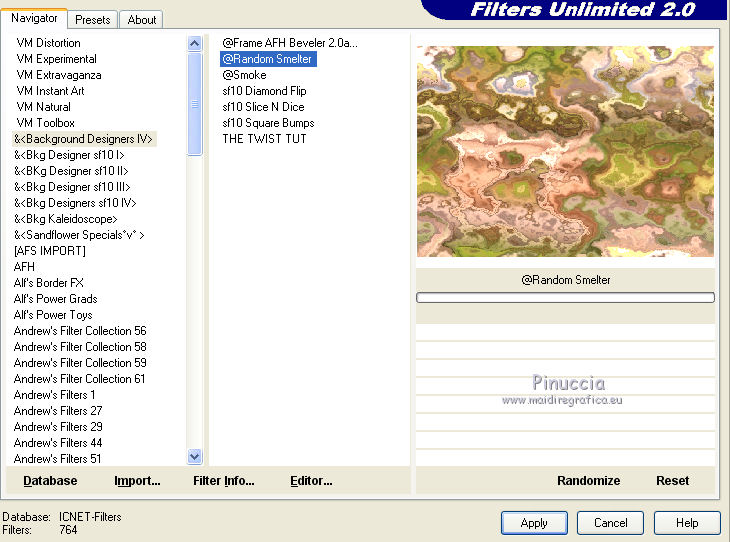 Effetti>Plugins>Filters Unlimited 2.0 &<Background Designer IV> - @Random Smelter