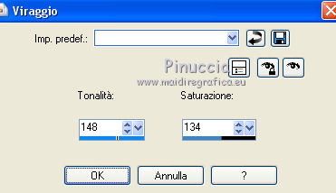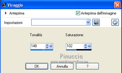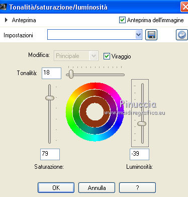 Regola>Tonalità e saturazione>Viraggio, con i settaggi precedenti.