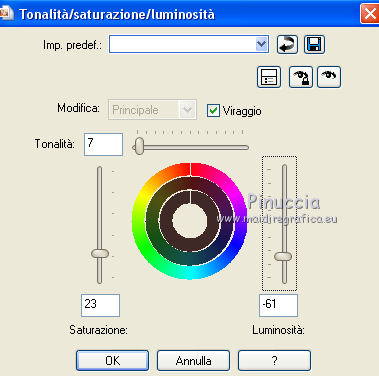 Regola>Tonalità e saturazione>Tonalità/Saturazione/Luminosità, con i settaggi precedenti.