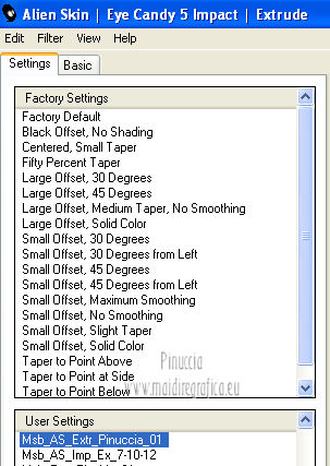Effetti>Plugins>Alien Skin Eye candy 5 Impact – Extrude.