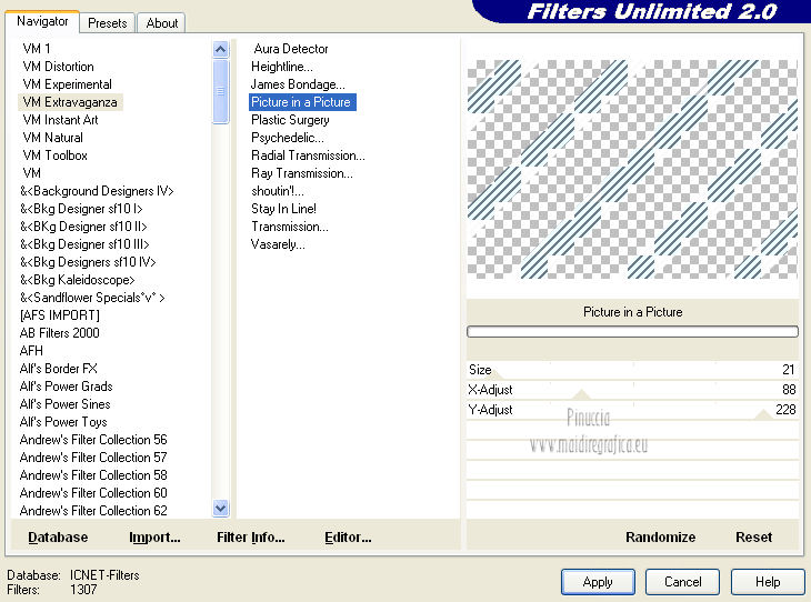 Effetti>Plugins>Filters Unlimited 2.0 - VM Extravaganza – Picture in a Picture, con i settaggi standard.
