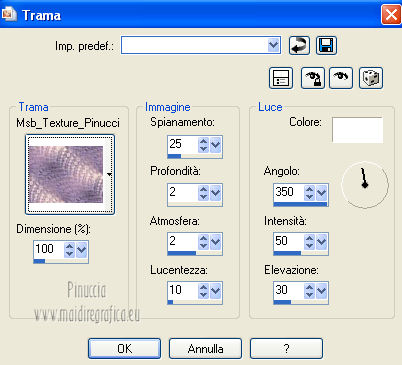 Effetti>Effetti di trama>Trama, seleziona la trama Msb_Texture_Pinuccia e ok.