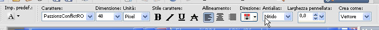 Cambia il font con Passion Conflict, dimensione 48, pennellata 0.