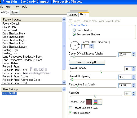 Effetti>Plugins>Alien Skin Eye Candy 5 Impact - Perspective Shadow.