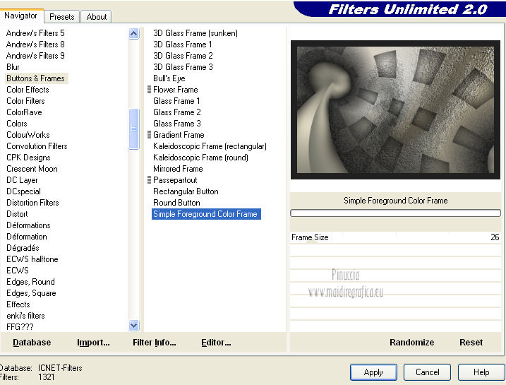 Effetti>Plugins>Filters Unlimited 2.0 – Buttons and Frames - Simple Foreground Color Frame, con i settaggi standard.