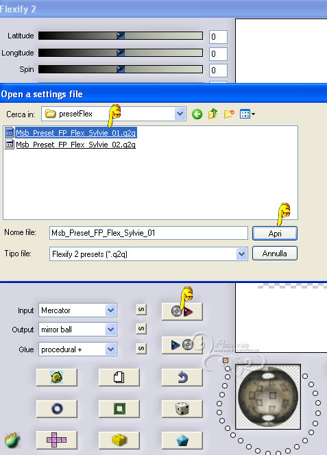 Clicca sulla freccia rossa e cerca il preset Msb_Preset_FP_Flex_Sylvie_02