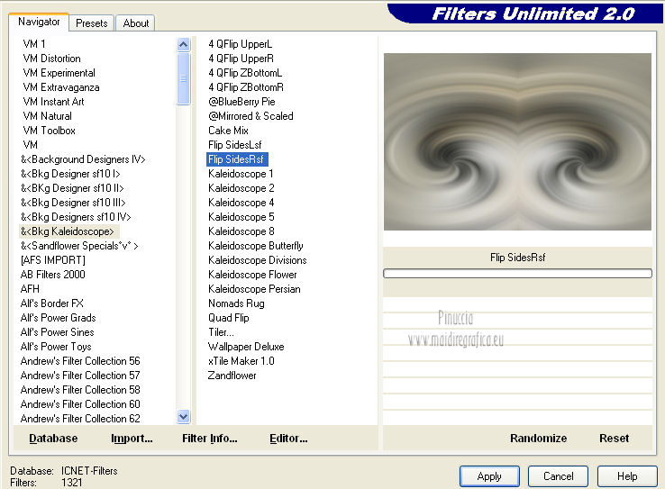 Effetti>Plugins>Filters Unlimited 2.0 – &<Bkg Kaleidoscope> - Flip Sides Rsf.