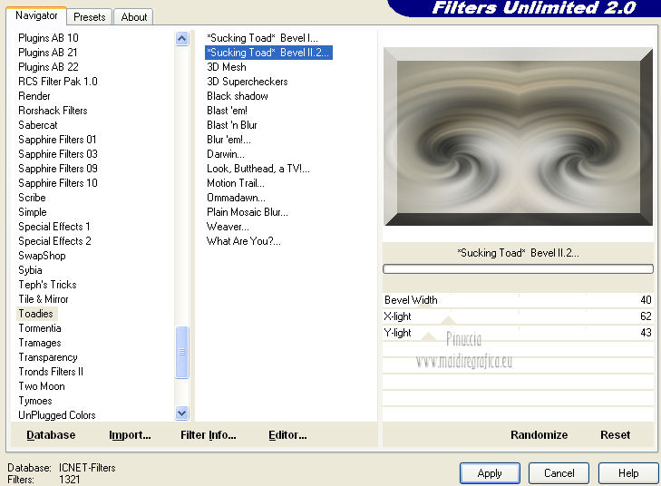 Effetti>Plugins>Filters Unlimited 2.0 – Toadies – “Sucking Toad” Bevel II 2.