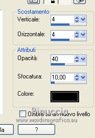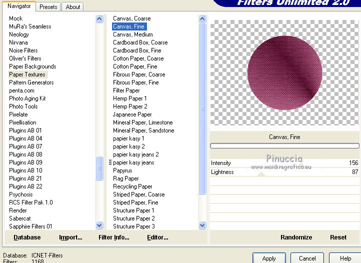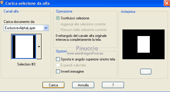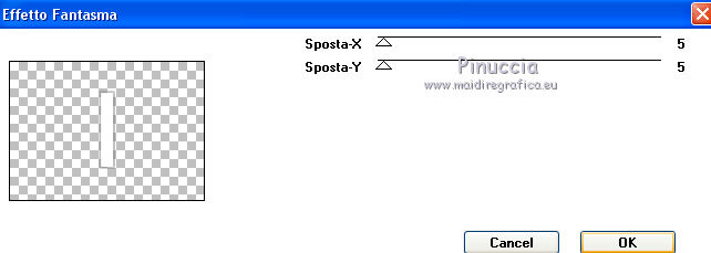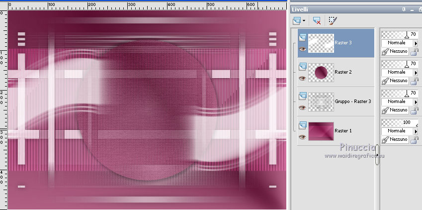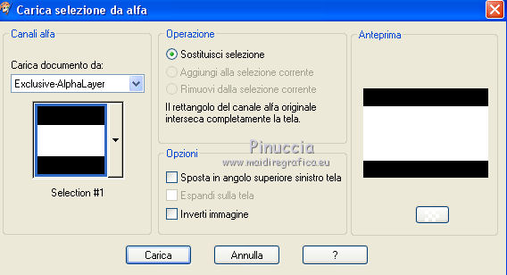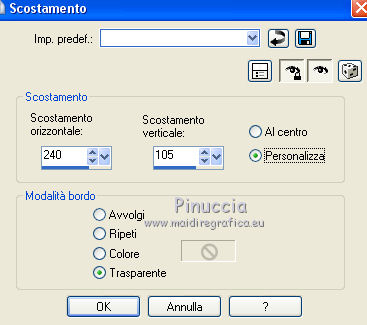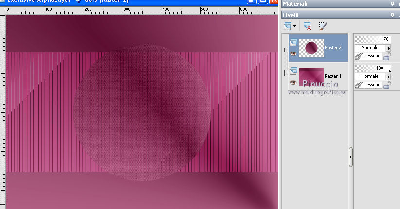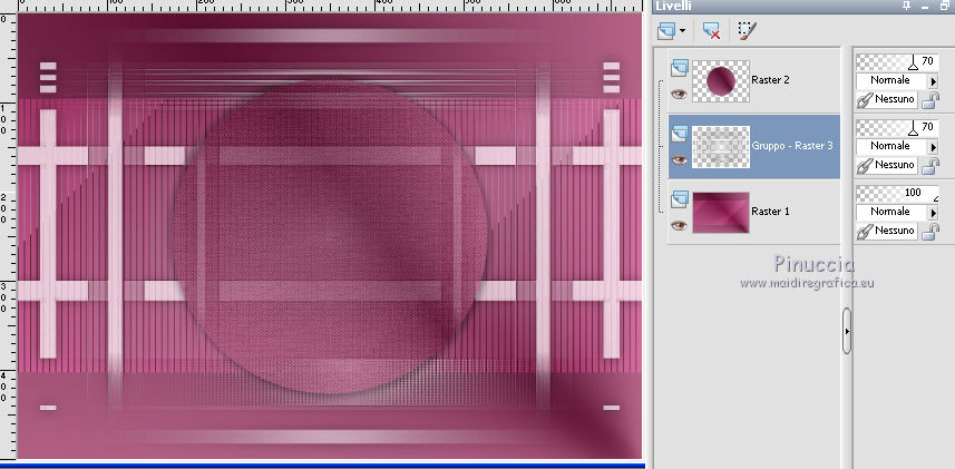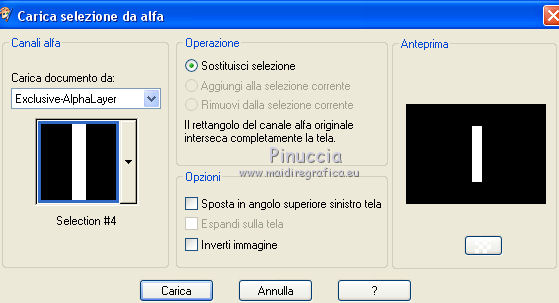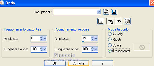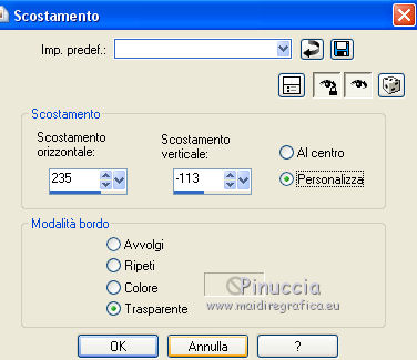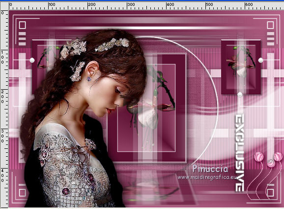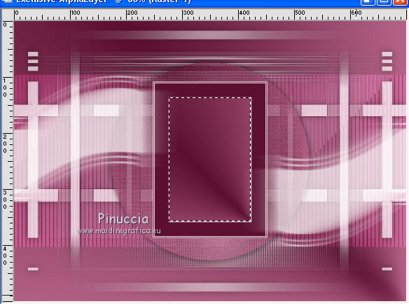 qui puoi trovare qualche risposta ai tuoi dubbi. Se l'argomento che ti interessa non è presente, ti prego di segnalarmelo. Questo tutorial è stato realizzato con Corel19 e tradotto con CorelX7, CorelX2 e CorelX3, ma può essere realizzato anche con le altre versioni di PSP. Dalla versione X4, il comando Immagine>Rifletti è stato sostituito con Immagine>Capovolgi in orizzontale, e il comando Immagine>Capovolgi con Immagine>Capovolgi in verticale. Nelle versioni X5 e X6, le funzioni sono state migliorate rendendo disponibile il menu Oggetti. Con la nuova versione X7, sono tornati Rifletti>Capovolgi, ma con nuove varianti. Vedi la scheda sull'argomento qui Occorrente: Materiale qui Per i tube e la maschera grazie Gabry e Kamil. Il resto del materiale è di Melodi. (in questa pagina trovi i links ai siti dei creatori di tubes) Filtri: se hai problemi con i filtri, consulta la mia sezione filtri qui Filters Unlimited 2.0 qui Tramages - Tow the Line qui Flaming Pear - Flexify 2 qui Italian Editors Effects qui Alien Skin Eye Candy 5 Impact - Perspective Shadow qui I filtri Tramage e Italian Editors si possono usare da soli o importati in Filters Unlimited (come fare vedi qui) Se un filtro fornito appare con questa icona ![]() non esitare a cambiare modalità di miscelatura e opacità secondo i colori utilizzati. Nelle ultime versioni di PSP non c'è il gradiente di primo piano/sfondo (Corel_06_029) Puoi usare i gradienti delle versioni precedenti. Trovi qui i gradienti Corel X. Metti il preset Cliccando sul file una o due volte (a seconda delle tue impostazioni), automaticamente il preset si installerà nella cartella corretta. perchè uno o due clic vedi qui Metti il preset per Flexify in una cartella a scelta. Lo importerai da questa cartella quando ti servirà. Metti la cornice Kamil-exclusive nella cartella Cornici-immagine. Apri la maschera in PSP e minimizzala con il resto del materiale. ![]() Imposta il colore di primo piano con #5c1031, e il colore di sfondo con #ed99bf. ![]() (obbligatoriamente, se usi altre immagini, il colore di sfondo dovrà essere bianco o un colore vicino al bianco). Passa il colore di primo piano a Gradiente di primo piano/sfondo, stile Radiale. ![]() 1. Apri Alpha Channels.psp. Finestra>Duplica o sulla tastiera maiuscola+D per fare una copia. ![]() Chiudi l'originale. La copia, che sarà la base del tuo lavoro, non è vuota, ma contiene le selezioni salvate sul canale alfa. Riempi l'immagine trasparente con il gradiente.Regola>Sfocatura>Sfocatura da movimento. ![]() 2. Livelli>Nuovo livello raster, Raster 2. Selezione>Carica/Salva selezione>Carica selezione da canale alfa. La selezione #1 è subito disponibile. Devi soltanto cliccare Carica. ![]() Riempi la selezione con il colore di sfondo.Selezione>Deseleziona. 3. Effetti>Plugins>Tramages - Tow the Line. ![]() Cambia la modalità di miscelatura di questo livello in Luca diffusa. ![]() Livelli>Unisci>Unisci giù. 4. Livelli>Nuovo livello raster, Raster 2. Riempi la selezione con il gradiente.Effetti>Plugins>Flaming Pear - Flexify 2. Clicca sul bottone rosso e cerca il preset, nella cartella in cui lo hai salvato. ![]() Questi i settaggi in caso di problemi con il preset. ![]() Effects> Plugins>Filters Unlimited 2.0 - Paper Textures - Canvas, Fine, con i settaggi standard. ![]() Abbassa l'opacità di questo livello al 70%. ![]() Effetti>Effetti 3D>Sfalsa ombra, colore nero. ![]() Ripeti l'Effetto Sfalsa ombra, orizzontale e verticale -4. ![]() Risultato ![]() 5. Livelli>Nuovo livello raster, Raster 3. Imposta il colore di sfondo con il colore bianco #ffffff. Riempi il livello con il colore bianco.Livelli>Nuovo livello maschera>Da immagine. Apri il menu sotto la finestra di origine e vedrai la lista dei files aperti. Seleziona la maschera Kamil mask. ![]() Livelli>Duplica. Livelli>Unisci>Unisci gruppo (gruppo Raster 3). Effetti>Effetti di bordo>Aumenta. Effetti>Effetti 3D>Sfalsa ombra, colore nero. ![]() Abbassa l'opacità di questo livello al 70%, o secondo il tuo mist. Livelli>Disponi>Sposta giù. ![]() 6. Attiva il livello superiore, Raster 2. Livelli>Nuovo livello raster, Raster 3. Selezione>Carica/Salva selezione>Carica selezione da canale alfa. Apri il menu delle selezioni e carica la selezione #2. Modalità di corrispondenza dello strumento Riempimento su Nessuno ![]() Riempi la selezione con il colore #ffffff.Selezione>Deseleziona. Effetti>Effetti di distorsione>Onda. ![]() Effetti>Effetti di distorsione>Vento - da sinistra, intensità 90. ![]() Livelli>Duplica. Immagine>Rifletti. Immagine>Capovolgi. Livelli>Unisci>Unisci giù. Abbassa l'opacità di questo livello al 70%. ![]() 7. Attiva il livello Raster 2. Livelli>Nuovo livello raster, Raster 4. Selezione>Carica/Salva selezione>Carica selezione da canale alfa. Apri il menu delle selezioni e carica la selezione #3. ![]() Riempi la selezione con il colore #ffffff.Selezione>Modifica>Contrai - 1 pixel. Passa il colore di primo piano a Colore. Riempi la selezione con il colore di primo piano #5c1031.Selezione>Modifica>Contrai - 1 pixel. Riempi la selezione con il colore #ffffff.Selezione>Modifica>Contrai - 1 pixel. Riempi la selezione con il colore di primo piano #5c1031.Selezione>Modifica>Contrai - 25 pixels. Riempi la selezione con il colore #ffffff.Selezione>Modifica>Contrai - 1 pixel. Imposta nuovamente il gradiente con il colore di sfondo iniziale #ed99bf. ![]() Riempi la selezione con il gradiente.Selezione>Deseleziona. ![]() 8. Apri il tube Melodi-Exclusive-flower e vai a Modifica>Copia. Torna al tuo lavoro e vai a Modifica>Incolla come nuovo livello. Immagine>Ridimensiona, al 45%, tutti i livelli non selezionato. Posiziona il tube sulla selezione.![]() Selezione>Inverti. Premi sulla tastiera il tasto CANC. Selezione>Deseleziona. Regola>Messa a fuoco>Metti a fuoco. Livelli>Unisci>Unisci giù. Effetti>Effetti 3D>Sfalsa ombra, colore nero. ![]() ![]() 9. Liveli>Nuovo livello raster - Raster 5. Selezione>Carica/Salva selezione>Carica selezione da cana