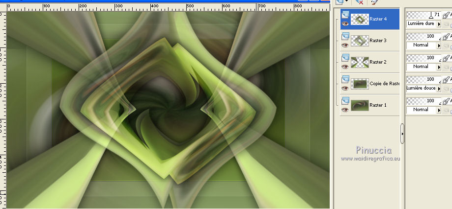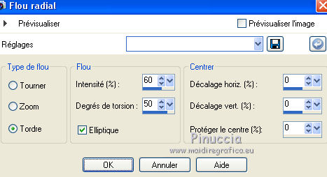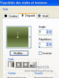 Ce tutoriel a été créé avec CorelX17, mais il peut également être exécuté avec les autres versions. Pour traduire le tutoriel j'ai utilisé CorelX pour l'italien et CorelX17 pour le français. Suivant la version utilisée, vous pouvez obtenir des résultats différents. Depuis la version X4, la fonction Image>Miroir a été remplacée par Image>Renverser horizontalement, et Image>Renverser avec Image>Renverser verticalement . Dans les versions X5 et X6, les fonctions ont été améliorées par la mise à disposition du menu Objets. Dans la nouvelle version X7, nous avons à nouveau Miroir/Renverser, mais avec autres différences. Voir plus les détails à ce sujet ici Certaines dénominations ont changées entre les versions de PSP. Les plus frequentes dénominations utilisées: ![]() Traduction en italien ici Vos versions ici Nécessaire pour réaliser ce tutoriel: Matériel qui Modules Externes consulter, si nécessaire, ma section de filtre ici Toadies - What are you ici Filters Unlimited 2.0 ici Filtres Toadies peuvent être utilisés seuls ou importés dans Filters Unlimited. voir comment le faire ici). Si un filtre est fourni avec cette icône, ![]() Si vous voulez utiliser vos propres couleurs, n'hésitez pas à changer le mode et l'opacité des calques Dans les plus récentes versions de PSP, vous ne trouvez pas le dégradé d'avant plan/arrière plan ou Corel_06_029. Vous pouvez utiliser le dégradé des versions antérieures. Ici le dossier Dégradés de CorelX. 1. Placer en avant plan la couleur #89a067 et en arrière plan la couleur #4d5826. ![]() Préparer en avant plan un dégradé de premier plan/arrière plan, style Linéaire. ![]() 2. Ouvrir une nouvelle image transparente 900 x 550 pixels. ![]() Remplir l'image transparente du dégradé.3. Sélections>Sélectionner tout. 4. Apri il tube kerst-guirlande.png - Édition>Copier. Revenir sur votre travail et Édition>Coller dans la sélection. Sélections>Désélectionner tout. 5. Réglage>Flou>Flou radial. ![]() 6. Calques>Dupliquer. Image>Redimensionner, à 80%, redimensionner tous les calques décoché. 7. Effets>Modules Externes>Filters Unlimited 2.0 - Toadies - What are you ![]() 8. Effets>Effets de bords>Accentuer davantage. 9. Placer le calque en mode Lumière douce. 10. Ouvrir deco1.png - Édition>Copier. Revenir sur votre travail et Édition>Coller comme nouveau calque. 11. Ouvrir deco-3.png - Édition>Copier. Revenir sur votre travail et Édition>Coller comme nouveau calque. 12. Ouvrir deco-2.png - Édition>Copier. Revenir sur votre travail et Édition>Coller comme nouveau calque. 13. Placer le calque en mode Lumière dure et réduire l'opacité à 71%. ![]() 14. Ouvrir deco-kerst-2016-1.png - Édition>Copier. Revenir sur votre travail et Édition>Coller comme nouveau calque. 15. Image>Redimensionner, à 80% (ou à votre convenance), redimensionner tous les calques décoché. Déplacer le tube en bas à gauche.16. Effets>Effets 3D>Ombre portée, couleur noire. ![]() Édition>Répéter Ombre portée. 17. Ouvrir le tube deco-4.png - Édition>Copier. Revenir sur votre travail et Édition>Coller comme nouveau calque. Déplacer le tube à droite.![]() 18. Image>Ajouter des bordures, 2 pixels, symétrique, couleur foncée. Image>Ajouter des bordures, 1 pixel, symétrique, couleur blanche. 19. Sélections>Sélectionner tout. 20. Édition>Copier. 21. Image>Ajouter des bordures, 50 pixels, symétrique, couleur blanche. 22. Sélections>Inverser. 23. Édition>Coller dans la sélection. 24. Réglage>Flou>Flou radial, comme précédemment. ![]() 25. Sélections>Inverser. Effets>Effets 3D>Ombre portée, comme précédemment. ![]() Sélections>Désélectionner tout. 26. Ouvrir ster-1. Fichier>Exporter>Tube à images, donner un nom au tube et ok. Activer l'outil Tube à images ![]() chercher et sélectionner le tube à image ster-1 ![]() 27. Appliquer le tube à votre convenance avec échelles différentes: 50, 35, 25. 28. Image>Ajouter des bordures, 2 pixels, symétrique, couleur foncée. 29. Signer votre travail sur un nouveau calque. 30. Image>Redimensionner, 900 pixels de largeur, redimensionner tous les calques coché. 31. Enregistrer en jpg. ![]() Si vous avez des problèmes, ou des doutes, ou vous trouvez un link modifié, ou seulement pour me dire que ce tutoriel vous a plu, vous pouvez m'écrire. 20 Novembre 2016 |
