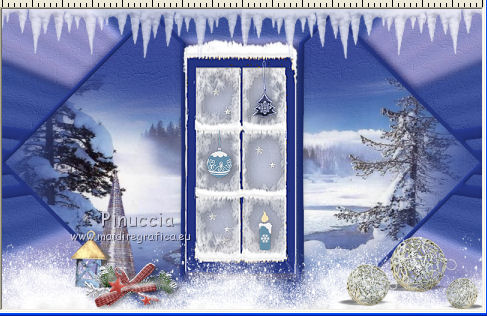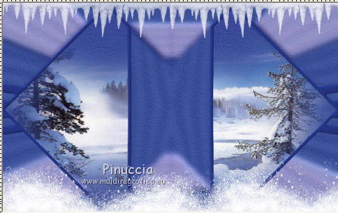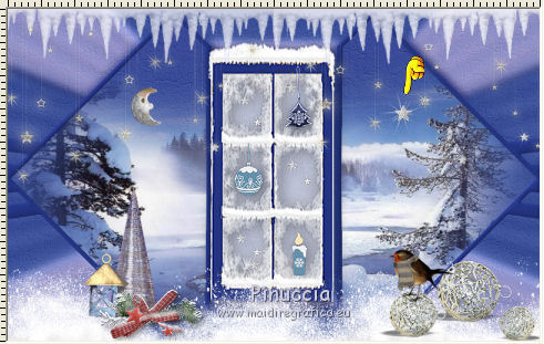 Pour traduire le tutoriel j'ai utilisé CorelX2, mais il peut également être exécuté avec les autres versions. Suivant la version utilisée, vous pouvez obtenir des résultats différents. Depuis la version X4, la fonction Image>Miroir a été remplacée par Image>Renverser horizontalement, et Image>Renverser avec Image>Renverser verticalement. Dans les versions X5 et X6, les fonctions ont été améliorées par la mise à disposition du menu Objets. Dans la nouvelle version X7, nous avons à nouveau Miroir/Renverser, mais avec autres différences. Voir plus les détails à ce sujet ici Certaines dénominations ont changées entre les versions de PSP. Les plus frequentes dénominations utilisées: ![]() Traduction en italien ici Nécessaire pour réaliser ce tutoriel: Matériel ici Tube de Guismo ![]() Si vous voulez utiliser vos propres couleurs, n'hésitez pas à changer le mode et l'opacité des calques 1. Placer en avant plan la couleur #40519d, et en arrière plan la couleur #ffffff. ![]() 2. Ouvrir une nouvelle image transparente 800 x 500 pixels. 3. Ouvrir Achtergrond-02-2013- Édition>Copier. Revenir sur votre travail et Édition>Coller comme nouveau calque. 4. Ouvrir deco-01-20- Édition>Copier. Revenir sur votre travail et Édition>Coller comme nouveau calque. 5. Sélections>Sélectionner tout. Sélections>Flottante. Sélections>Statique. Effets>Effets 3D>Biseautage intérieur. ![]() Sélections>Désélectionner tout. 6. Activer l'outil Baguette magique , tolérance et progressivité 0,et cliquer sur les parties à droite et à gauche pour les sélectionner. ![]() Sélections>Modifier>Agrandir - 2 pixels. 7. Calques>Mouveau calque raster. Ouvrir Cal-guis-mistpaysage- Édition>Copier. Revenir sur votre travail et Édition>Coller dans la sélection. Sélections>Désélectionner tout. 8. Calques>Agencer>Déplacer vers le bas. Vous positionner sur le calque du haut de la pile. Calques>Fusionner>Fusionner le calque de dessous. 9. Ouvrir snow-fun.pspimage- Édition>Copier. Revenir sur votre travail et Édition>Coller comme nouveau calque. Déplacer en haut, voir mon exemple.10. Réduire l'opacité de ce calque à 80%. 11. Ouvrir Sneeuw.pspimage- Édition>Copier. Revenir sur votre travail et Édition>Coller comme nouveau calque. Déplacer en bas à gauche, voir mon exemple.12. Calques>Dupliquer. Image>Miroir. Positionner bien les tubes pour avoir un bord de neige.![]() 13. Assurez-vous d'être positionner sur le calque de dessus. Calques>Fusionner>Fusionner le calque de dessous. 14. Ouvrir deco-deur-2013.pspimage- Édition>Copier. Revenir sur votre travail et Édition>Coller comme nouveau calque. Déplacer au centre, voir mon exemple.Déplacer ce calque au dessus du calque du cadre. 15. Ouvrir deco-2-2013. pspimage- Édition>Copier. Revenir sur votre travail et Édition>Coller comme nouveau calque. Calques>Agencer>Placer en haut de la pile. Déplacer en bas à gauche, voir mon exemple.16. Ouvrir zilveren-ballen.pspimage- Édition>Copier. Revenir sur votre travail et Édition>Coller comme nouveau calque. Déplacer en bas à droite.![]() 17. Ouvrir Vogel.pspimage- Édition>Copier. Revenir sur votre travail et Édition>Coller comme nouveau calque. Déplacer en bas à droite, sur la boule.![]() 18. Ouvrir sterren-rand.pspimage- Édition>Copier. Revenir sur votre travail et Édition>Coller comme nouveau calque. Déplacer en haut.19. Ouvrir maan.pspimage- Édition>Copier. Revenir sur votre travail et Édition>Coller comme nouveau calque. Déplacer en haut à gauche.20. Ouvrir ster.pspimage- Édition>Copier. Revenir sur votre travail et Édition>Coller comme nouveau calque. Déplacer en haut à droite.![]() 21. Image>Ajouter des bordures, 2 pixels, symétrique, couleur #40519d. Édition>Copier. 22. Sélections>Sélectionner tout. Image>Ajouter des bordures, 50 pixels, symétrique, couleur blanche. Sélections>Inverser. Édition>Coller dans la sélection. 23. Réglage>Flou>Flou gaussien - rayon 30. ![]() Sélections>Désélectionner tout. 24. Ouvrir rand-1-2013- Édition>Copier. Revenir sur votre travail et Édition>Coller comme nouveau calque. 25. Effets>Effets 3D>Ombre portée, couleur noire. ![]() 26. Image>Ajouter des bordures, 1 pixel, symétrique, couleur #ffffff. 27. Signer votre travail sur un nouveau calque. Calques>Fusionner>Tous et enregistrer en jpg. ![]() Si vous avez des problèmes, ou des doutes, ou vous trouvez un link modifié, ou seulement pour me dire que ce tutoriel vous a plu, vous pouvez m'écrire. 14 Décember 2015 |