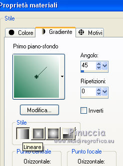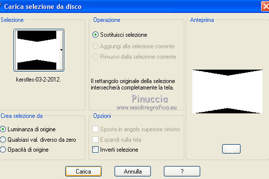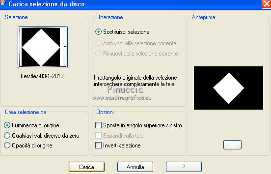 qui puoi trovare qualche risposta ai tuoi dubbi. Se l'argomento che ti interessa non è presente, ti prego di segnalarmelo. Per tradurre questo tutorial ho usato Corel X, ma può essere eseguito con ogni versione di PSP. Dalla versione X4, il comando Immagine>Rifletti è stato sostituito con Immagine>Capovolgi in orizzontale, e il comando Immagine>Capovolgi con Immagine>Capovolgi in verticale. Nelle versioni X5 e X6, le funzioni sono state migliorate rendendo disponibile il menu Oggetti. Con la nuova versione X7, sono tornati Rifletti/Capovolgi, ma con nuove differenze Vedi la scheda sull'argomento qui traduction en français qui Occorrente: Materiale qui Tube di Nikita e Anna.br. Filtri in caso di dubbi, ricorda di consultare la mia sezione filtri qui Filters Unlimited 2.0 qui Simple qui Simple - bonus qui Muras's Meister - Perspective Tiling qui AFS IMPORT - sqborder2 qui Toadies - Posterize qui I filtri Simple, Toadies e AFS IMPORT si possono usare da soli o importati in Filters Unlimited (come fare vedi qui) Se un filtro fornito appare con questa icona Secondo l'uso e la versione di Unlimited utilizzata (circola in rete una versione che non si installa, ma è composta da files in formato 8bf, potresti ottenere risultati differenti. ![]() se stai usando altri colori, sperimenta le modalità di miscelatura e opacità più adatte ai tuoi colori Nelle ultime versioni di PSP non c'è il gradiente di primo piano/sfondo (Corel_06_029) Trovi i gradienti delle versioni precedenti qui Metti le selezioni nella cartella Selezioni. 1. Imposta il colore di primo piano con #227a55, e il colore di sfondo con #ffffff. ![]() Passa il colore di primo piano a Gradiente di primo piano/sfondo, stile Lineare. ![]() 2. Apri una nuova immagine trasparente 800 x 500 pixels, e riempila con il gradiente.3. Effetti>Plugins>Filters Unlimited 2.0 - Toadies - Posterize. ![]() 4. Effetti>Plugins>Filters Unlimited 2.0 - Simple - Blintz ![]() 5. Effetti>Plugins>Filters Unlimited 2.0 - Simple - 4Way Average. ![]() 6. Effetti>Plugins>Filters Unlimited 2.0 - Simple - Half Wrap. ![]() Effetti>Effetti di bordo>Aumenta di più. 7. Livelli>Duplica. Effetti>Plugins>Filters Unlimited 2.0 - Simple - Left Right Wrap. ![]() Abbassa l'opacità di questo livello al 50%. 8. Livelli>Unisci>Unisci giù. 9. Livelli>Duplica. Immagine>Ruota per gradi - 90 gradi a destra. ![]() 10. Attiva il livello inferiore. Selezione>Seleziona tutto. Immagine>Ritaglia la selezione. 11. Attiva il livello superiore. Effetti>Effetti di immagine>Motivo unico, con i settaggi standard. ![]() 12. Effetti>Plugins>Filters Unlimited 2.0 - Simple - 4way Average. ![]() 13. Di nuovo Attiva il livello inferiore. Selezione>Seleziona tutto. Immagine>Ritaglia la selezione. 14. Attiva il livello superiore. Livelli>Duplica. Immagine>Ridimensiona, all'80%, tutti i livelli non selezionato. 15. Effetti>Plugins>AFS IMPORT - sqborder2, con i settaggi standard. ![]() 16. Effetti>Effetti di immagine>Motivo unico, con i settaggi standard. Abbassa l'opacità di questo livello al 50%. 17. Attiva il livello inferiore. Selezione>Carica/Salva selezione>Carica selezione da disco. Cerca e carica la selezione kerstles-03-1-2012. ![]() Selezione>Innalza selezione a livello. Livelli>Disponi>Porta in alto. Selezione>Deseleziona. 18. Effetti>Plugins>Filters Unlimited 2.0 - AFS IMPORT - sqborder2, con i settaggi standard. ![]() 19. Immagine>Ruota per gradi - 90 gradi a destra. 20. Effetti>Plugins>Filters Unlimited 2.0 - AFS IMPORT - sqborder2, con i settaggi standard. 21. Immagine>Ridimensiona, al 90%, tutti i livelli non selezionato. 22. Livelli>Duplica. Immagine>Ridimensiona, al 70%, tutti i livelli non selezionato. 23. Effetti>Effetti di immagine>Scostamento. ![]() 24. Livelli>Duplica. Immagine>Rifletti. 25. Livelli>Duplica. Immagine>Ridimensiona, al 70%, tutti i livelli non selezionato. 26. Effetti>Effetti di immagine>Scostamento. ![]() 27. Livelli>Duplica. Immagine>Rifletti. 28. Livelli>Unisci>Unisci giù - 4 volte. 29. Effetti>Effetti 3D>Sfalsa ombra, colore nero. ![]() 30. Attiva il livello inferiore. Livelli>Duplica. 31. Selezione>Carica/Salva selezione>Carica selezione da disco. Cerca e carica la selezione kerstles-03--2-2012. ![]() 32. Selezione>Inverti. Premi sulla tastiera il tasto CANC ![]() Selezione>Deseleziona. 33. Livelli>Disponi>Sposta su. Cambia la modalità di miscelatura di questo livello in Moltiplica. 34. Effetti>Effetti 3D>Sfalsa ombra, colore nero. ![]() 35. Attiva il livello superiore. Cambia la modalità di miscelatura di questo livello in Luminanza (esistente) e abbassa l'opacità all'80%. 36. Attiva il secondo livello dal basso - copia di Raster 1. Livelli>Duplica. 37. Effetti>Plugins>Mura's Meister - Perspective Tiling. ![]() Livelli>Disponi>Porta in alto. 38. Livelli>Unisci>Unisci visibile. 39. Apri ster-lijn, e vai a Modifica>Copia. Torna al tuo lavoro e vai a Modifica>Incolla come nuovo livello. Posiziona il tube in alto.Abbassa l'opacità di questo livello al 60%. 40. Livelli>Duplica. Immagine>Capovolgi. 41. Apri il tube 13206013504_noel_nikita[1], e vai a Modifica>Copia. Torna al tuo lavoro e vai a Modifica>Incolla come nuovo livello. Immagine>Ridimensiona, alll'80%, tutti i livelli non selezionato. Posiziona il tube al centro.42. Apri hulst-takje3, e vai a Modifica>Copia. Torna al tuo lavoro e vai a Modifica>Incolla come nuovo livello. Spostalo in alto a destra.43. Apri deco-1, e vai a Modifica>Copia. Torna al tuo lavoro e vai a Modifica>Incolla come nuovo livello. Spostalo in alto a destra.44. Apri kerst-tak, e vai a Modifica>Copia. Torna al tuo lavoro e vai a Modifica>Incolla come nuovo livello. Spostalo in alto a sinistra.45. Apri il tube TJ_Christmas_354, e vai a Modifica>Copia. Torna al tuo lavoro e vai a Modifica>Incolla come nuovo livello. Immagine>Ridimensiona, al 60%, tutti i livelli non selezionato. Immagine>Rifletti. Spostalo a destra.46. Apri cadeau-tas. e vai a Modifica>Copia. Torna al tuo lavoro e vai a Modifica>Incolla come nuovo livello. Sp