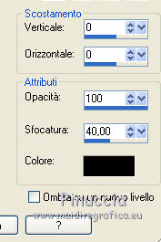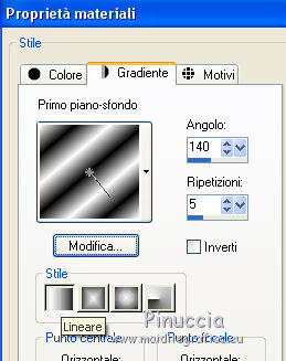 qui puoi trovare qualche risposta ai tuoi dubbi. Se l'argomento che ti interessa non è presente, ti prego di segnalarmelo. Per tradurre il tutorial ho usato Corel X7, ma può essere eseguito con ogni versione di PSP. Dalla versione X4, il comando Immagine>Rifletti è stato sostituito con Immagine>Capovolgi in orizzontale, e il comando Immagine>Capovolgi con Immagine>Capovolgi in verticale. Nelle versioni X5 e X6, le funzioni sono state migliorate rendendo disponibile il menu Oggetti. Con la nuova versione X7, sono tornati Rifletti/Capovolgi, ma con nuove differenze Vedi la scheda sull'argomento qui traduzione in francese quiLe vostre versioni qui ![]() Una pallina-souvenir per il vostro Albero di Natale Une boule-souvenir pour votre Arbre de Noël ![]() Occorrente: Materiale qui Filtri in caso di dubbi, ricorda di consultare la mia sezione filtri qui Filters Unlimited 2.0 qui Mura's Meister - Cloud qui VM Natural - Sparkle qui I filtri VM Natural si possono usare da soli o importati in Filters Unlimited (come fare vedi qui) Se un filtro fornito appare con questa icona ![]() se stai usando altri colori, sperimenta le modalità di miscelatura e opacità più adatte ai tuoi colori Nelle ultime versioni di PSP non c'è il gradiente di primo piano/sfondo (Corel_06_029) Puoi usare i gradienti delle versioni precedenti. Trovi qui i gradienti Corel X. Apri la maschera in PSP e minimizzala con il resto del materiale. 1. Imposta il colore di primo piano con #ffffff, e il colore di sfondo con il colore #000000. ![]() Passa il colore di primo piano a Gradiente di primo piano/sfondo, stile Lineare. ![]() 2. Apri una nuova immagine trasparente 900 x 550 pixels. ![]() Riempi l'immagine trasparente con il gradiente.3. Livelli>Nuovo livello raster. Riempi con il colore nero di sfondo.4. Livelli>Nuovo livello maschera>Da immagine. Apri il menu sotto la finestra di origine e vedrai la lista dei files aperti. Seleziona la maschera masker-8. ![]() Livelli>Unisci>Unisci gruppo. 5. Effetti>Effetti 3D>Sfalsa ombra, colore nero. ![]() Modifica>Ripeti Sfalsa ombra. 6. Apri deco-7 e vai a Modifica>Copia. Torna al tuo lavoro e vai a Modifica>Incolla come nuovo livello. Tasto K sulla tastiera per attivare lo strumento Puntatore ![]() e imposta Posizione X: 281,00 e Posizione Y: -44,00. ![]() 7. Apri deco-8 e vai a Modifica>Copia. Torna al tuo lavoro e vai a Modifica>Incolla come nuovo livello. Imposta Posizione X: 602,00 e Posizione Y: 114,00. ![]() 8. Apri deco-9 e vai a Modifica>Copia. Torna al tuo lavoro e vai a Modifica>Incolla come nuovo livello. Imposta Posizione X: 558,00 e Posizione Y: 120,00. ![]() 9. Apri deco-10 e vai a Modifica>Copia. Torna al tuo lavoro e vai a Modifica>Incolla come nuovo livello. Imposta Posizione X: -55,00 e Posizione Y: 65,00. ![]() Tasto M per deselezionare lo strumento. 10. Attiva il livello inferiore, Raster 1. Effetti>Plugins>Mura's Meister - Cloud ![]() 11. Effetti>Plugins>VM Natural - Sparkle - Max Size a 30 e ok. ![]() il risultato sarà random, cioè casuale 12. Immagine>Aggiungi bordatura, 2 pixels, simmetriche, colore bianco. Immagine>Aggiungi bordatura, 4 pixels, simmetriche, colore nero. Immagine>Aggiungi bordatura, 2 pixels, simmetriche, colore bianco. 13. Selezione>Seleziona tutto. Immagine>Aggiungi bordatura, 50 pixels, simmetriche, colore bianco. 15. Selezione>Inverti. Riempi la selezione con il gradiente.Effetti>Effetti 3D>Sfalsa ombra, colore nero. ![]() Selezione>Deseleziona. 16. Apri il wordart e vai a Modifica>Copia. Oppure, se preferisci, aggiungi un testo a tuo piacimento. Torna al tuo lavoro e vai a Modifica>Incolla come nuovo livello. Sposta in basso a destra, o dove preferisci.17. Firma il tuo lavoro su un nuovo livello. 18. Immagine>Aggiungi bordatura, 2 pixels, simmetriche, colore nero. Salva in formato jpg. ![]() ![]() Se hai problemi o dubbi, o trovi un link non funzionante, o anche soltanto per un saluto, scrivimi. 1 Novembre 2019 |