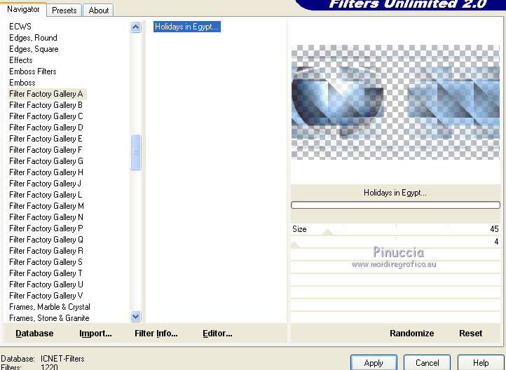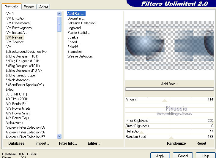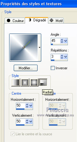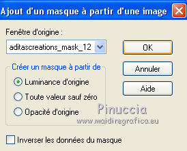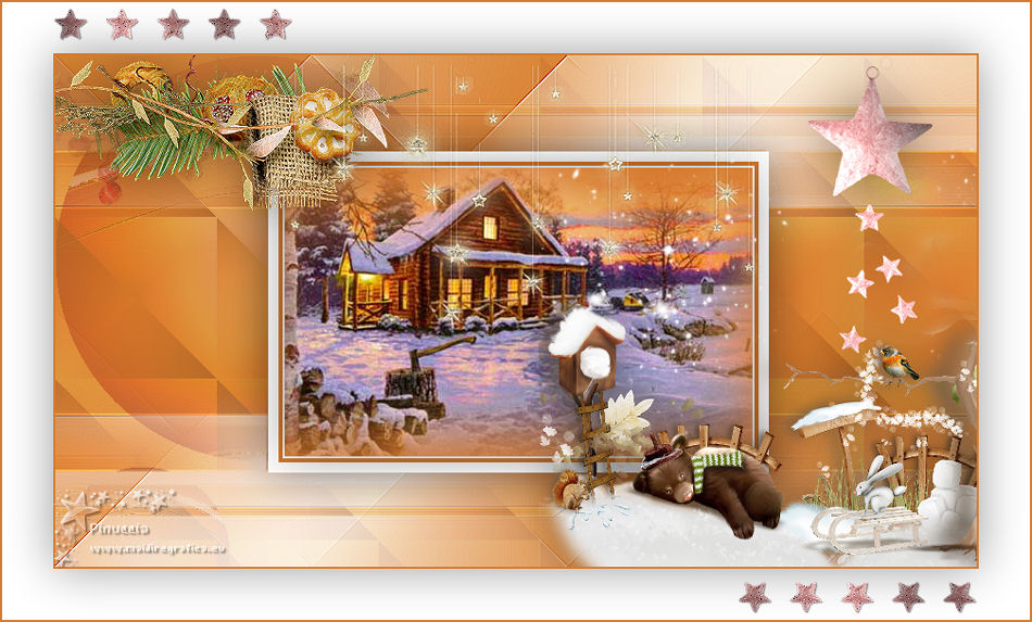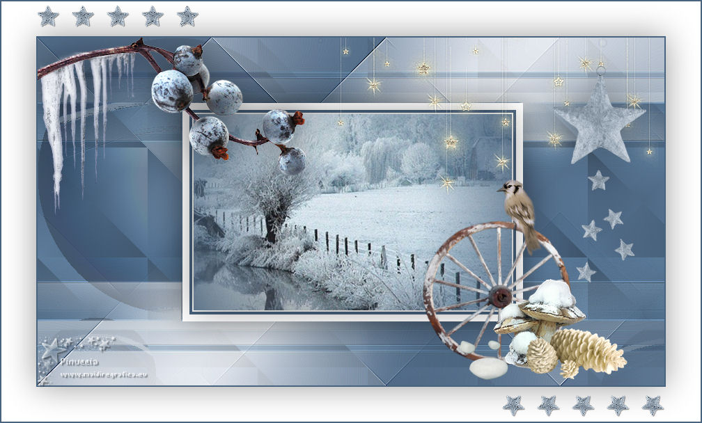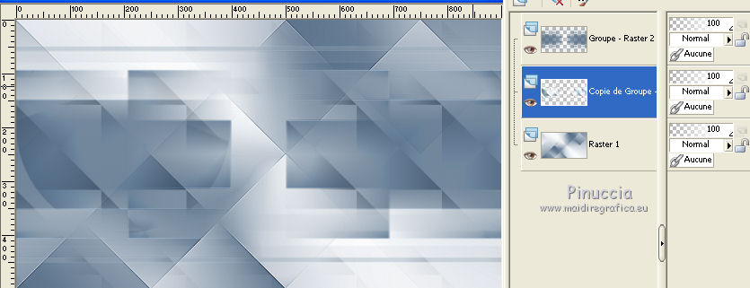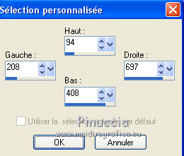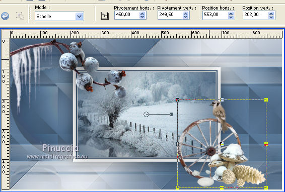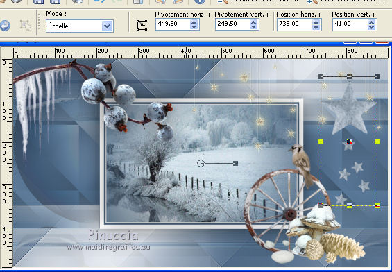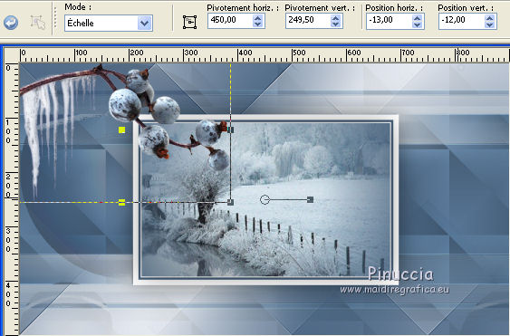 Ce tutoriel a été créé avec CorelX17, mais il peut également être exécuté avec les autres versions. Pour traduire le tutoriel j'ai utilisé CorelX17 pour l'italien et CorelX2 pour le français. Suivant la version utilisée, vous pouvez obtenir des résultats différents. Depuis la version X4, la fonction Image>Miroir a été remplacée par Image>Renverser horizontalement, et Image>Renverser avec Image>Renverser verticalement. Dans les versions X5 et X6, les fonctions ont été améliorées par la mise à disposition du menu Objets. Dans la nouvelle version X7, nous avons à nouveau Miroir/Renverser, mais avec autres différences. Voir plus les détails à ce sujet ici Certaines dénominations ont changées entre les versions de PSP. Les plus frequentes dénominations utilisées: ![]() Traduction en italien ici Vos versions iciNécessaire pour réaliser ce tutoriel: Matériel qui (les liens des sites des createurs de tubes ici) Modules Externes consulter, si nécessaire, ma section de filtre ici Filters Unlimited 2.0 ici Mehdi - Sorting Tiles ici Filter Factory Gallery A - ici VM Natural - Acid Rain ici Filtres Factory Gallery et VM Natural peuvent être utilisés seuls ou importés dans Filters Unlimited. voir comment le faire ici). Si un filtre est fourni avec cette icône, ![]() ![]() ![]() Si vous voulez utiliser vos propres couleurs, n'hésitez pas à changer le mode et l'opacité des calques Dans les plus récentes versions de PSP, vous ne trouvez pas le dégradé d'avant plan/arrière plan ou Corel_06_029. Vous pouvez utiliser le dégradé des versions antérieures. Ici le dossier Dégradés de CorelX. Ouvrir le masque dans PSP et le minimiser avec le reste du matériel. 1. Placer en avant plan la couleur #49647f, et en arrière plan la couleur #ffffff. ![]() Préparer en avant plan un dégradé de premier plan/arrière plan, style Radial. ![]() 2. Ouvrir une nouvelle image transparente 900 x 500 pixels. ![]() Remplir l'image transparente du dégradé.3. Réglage>Flou>Flou gaussien - raggio 30. ![]() 4. Effets>Modules Externes>Mehdi - Sorting Tiles ![]() 5. Effets>Effets de bords>Accentuer davantage. 6. Placer en avant plan la Couleur. Calques>Nouveau calque raster. Remplir le calque avec la couleur foncée d'avant plan.7. Calques>Nouveau calque de masque>A partir d'une image. Ouvrir le menu deroulant sous la fenêtre d'origine et vous verrez la liste des images ouvertes. Sélectionner le masque aditascreations_mask_12.jpg ![]() Calques>Fusionner>Fusionner le groupe. Effets>Effets de bords>Accentuer. 8. Calques>Dupliquer. Effets>Modules Externes>Filters Unlimited 2.0 - VM Natural - Acid Rain. ![]() attention: si vous utilisez la version de Unlimited qui n'a pas besoin d'installation, composée par files 8bf, vous aurez un résultat différent 9. Effets>Modules Externes>Filters Unlimited 2.0 - Filter Factory Gallery A - Holidays in Egypt. ![]() également dans ce cas, vous aurez un résultat différent avec la version de Unlimited en files 8bf 10. Calques>Agencer>Déplacer vers le bas. ![]() ci dessous la palette avec la version de Unlimited qui n'a pas besoin d'installation ![]() 11. Vous positionner sur le calque du haut de la pile. Calques>Nouveau calque raster. Activer l'outil Sélection ![]() (peu importe le type de sélection, parce que avec la sélection personnalisée vous obtenez toujours un rectangle), cliquer sur Sélection personnalisée ![]() et setter ces paramètres. ![]() Correspondance de l'outil Pot de peinture sur Aucun ![]() Remplir la sélection avec la couleur blanche d'arrière plan.12. Sélections>Modifier>Contracter - 10 pixels. Presser CANC sur le clavier ![]() 13. Remplir la sélection avec la couleur foncée.Sélections>Modifier>Contracter - 4 pixels. Remplir la sélection avec la couleur blanche.14. Sélections>Modifier>Contracter - 2 pixels. Remplir la sélection avec la couleur foncée.15. Ouvrir d34f71.pspimage - Édition>Copier. Revenir sur votre travail et Édition>Coller comme nouveau calque. Positionner bien le tube sur la sélection.16. Sélections>Inverser. Presser CANC sur le clavier ![]() 17. Sélections>Inverser. Calques>Fusionner>Fusionner le calque de dessous. 18. Effets>Effets 3D>Ombre portée, couleur #000000. ![]() Sélections>Désélectionner tout. 19. Répéter Effets>Effets 3D>Ombre portée, comme précédemment. ![]() 20. Ouvrir wintertak-7027b - Édition>Copier. Revenir sur votre travail et Édition>Coller comme nouveau calque. 21. Touche K sur le clavier pour activer l'outil Sélecteur ![]() et placer Position horiz.: -13,00 et Position vert.: -12,00. ![]() 22. Effets>Effets 3D>Ombre portée, comme précédemment. ![]() 23. Ouvrir deco-kerst-01 - Édition>Copier. Revenir sur votre travail et Édition>Coller comme nouveau calque. Outil Sélecteur ![]() et placer Position horiz.: 553,00 et Position vert.: 202,00. ![]() 24. Ouvrir deco-kerstles-1-1 - Édition>Copier. Revenir sur votre travail et Édition>Coller comme nouveau calque. Outil Sélecteur ![]() et placer Position horiz.: 411,00 et Position vert.: -33,00. ![]() 25. Ouvrir deco-kerstles-1-2 - Édition>Copier. Revenir sur votre travail et Édition>Coller comme nouveau calque. Outil Sélecteur ![]() et placer Position horiz.: 739,00 et Position vert.: 41,00. ![]() 26. Effets>Effets 3D>Ombre portée, comme précédemment. ![]() Touche M pour désélectionner l'outil. 27. Image>Ajouter des bordures ,2 pixels, symétrique, couleur foncée. Sélections>Sélectionner tout. Image>Ajouter des bordures, 50 pixels, symétrique, couleur blanche. Effets>Effets 3D>Ombre portée, comme précédemment. ![]() Sélections>Désélectionner tout. Image>Ajouter des bordures, 2 pixels, symétrique, couleur foncée. 28. Ouvrir Rand - Édition>Copier. Revenir sur votre travail et Édition>Coller comme nouveau calque. 29. Signer votre travail sur un nouveau calque. Calques>Fusionner>Tous et enregistrer en jpg. Version avec tube de Montana Kate (paysage); les autres tubes ne sont pas signé ![